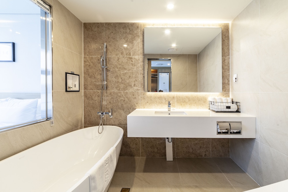 Located in Busan's Suyeong-gu district, the hotel is just steps away from Gwangalli Beach and a short drive to popular spots like Shinsegae Centum City and Haeundae Beach.