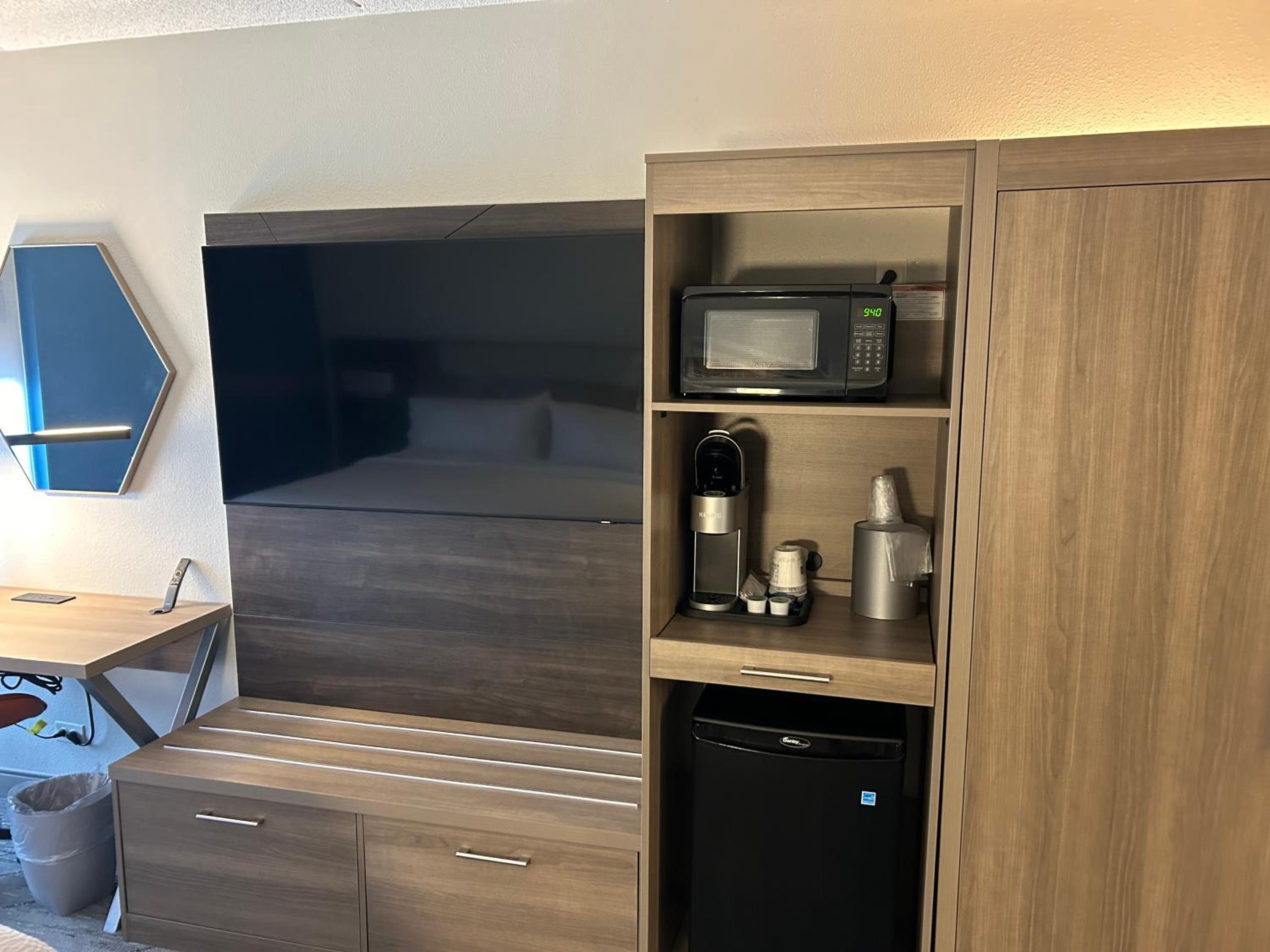 Guests can enjoy a relaxing stay in well-equipped rooms featuring modern amenities like free Wi-Fi, a flat-screen TV, and in-room microwave and fridge.
