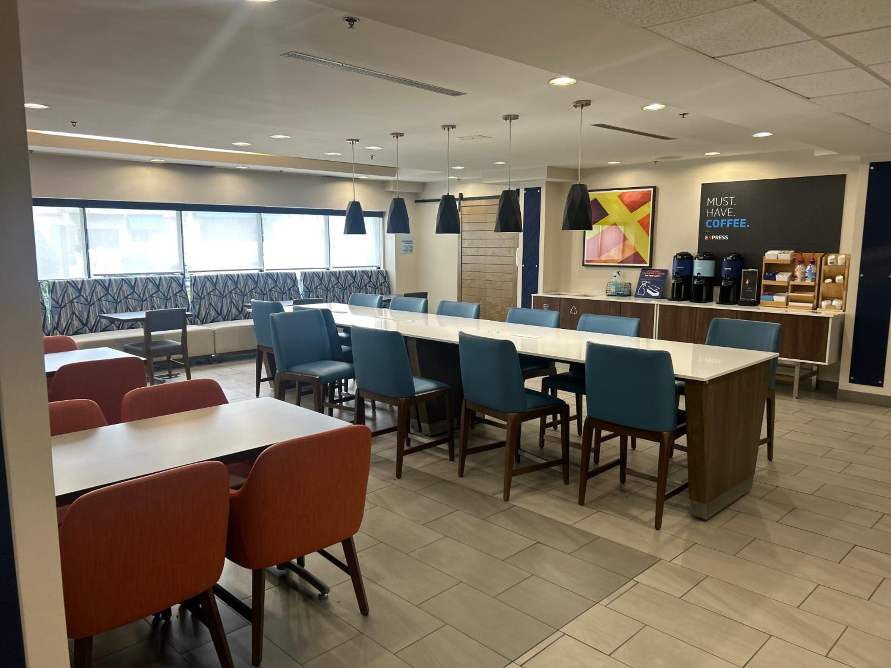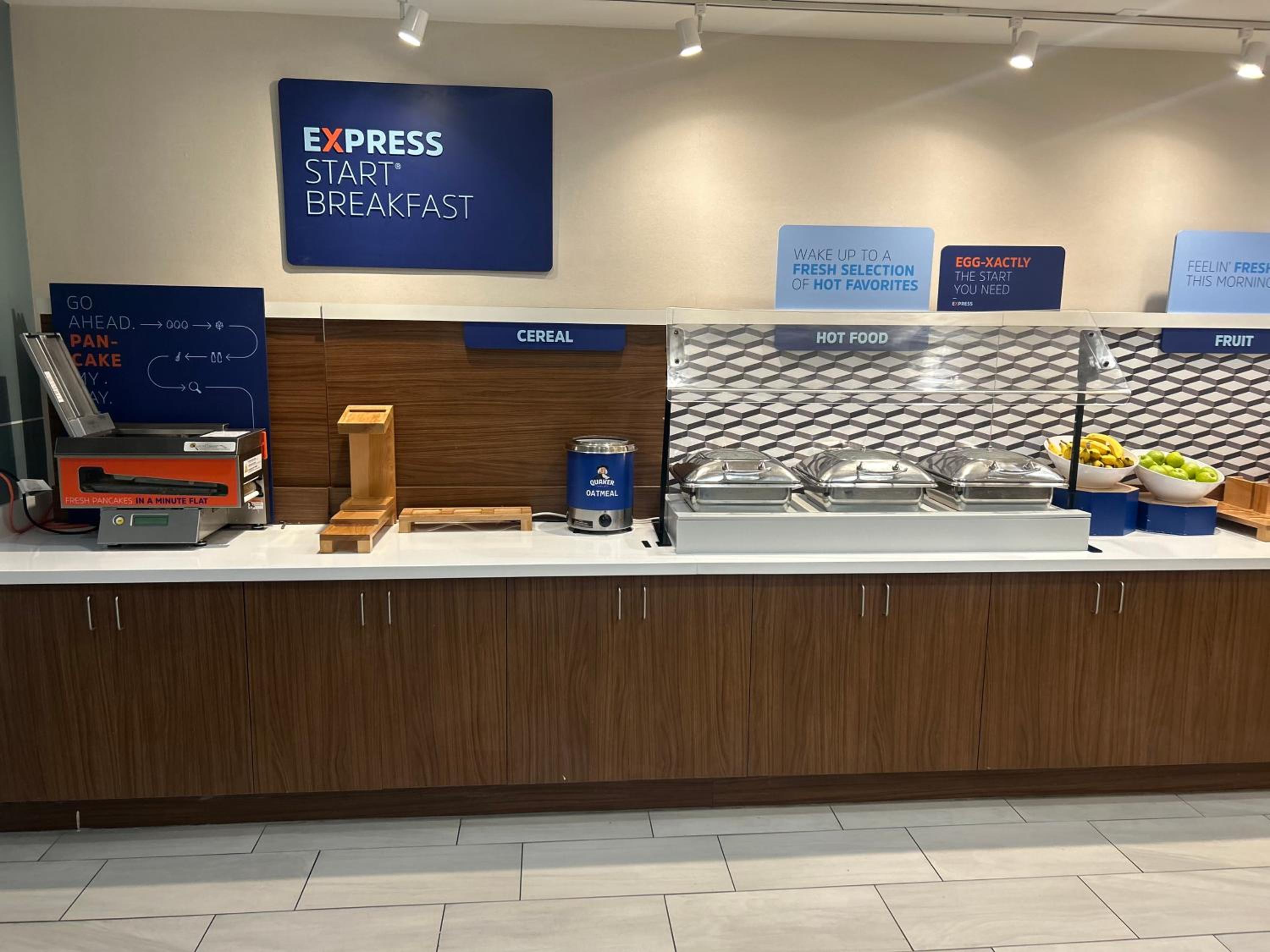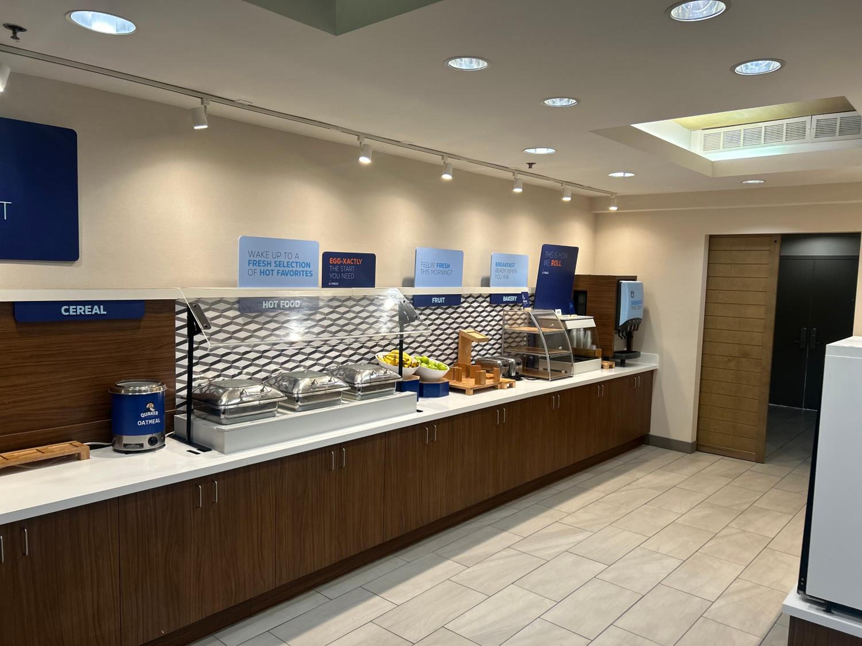 The coffee machine in the breakfast area wasn't working. There was only one staff member managing the breakfast on a Saturday morning. She wasn't able to keep up with the hot food. We were there around 8:00, so it wasn't even busy yet.