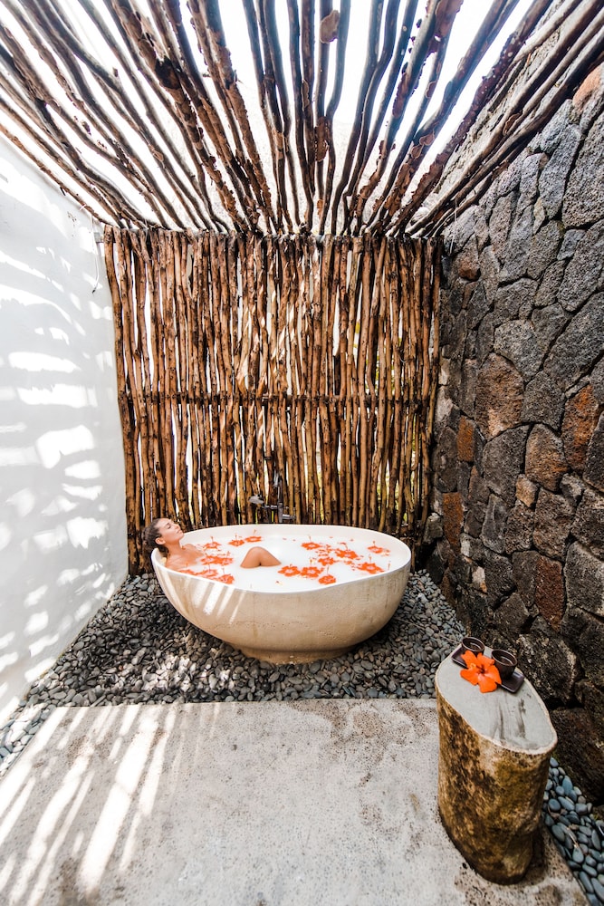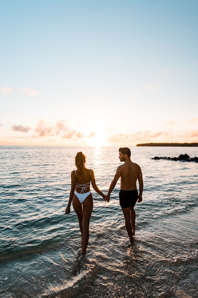 Unwind at the full-service spa with massages, body treatments, and facials. Take a dip in the outdoor swimming pools and lounge at the private beach, ensuring total relaxation.