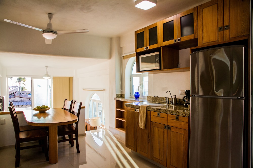 Could have been a beautiful stay if the place had wifi, hot water, reliable electricity and door locks that functioned. The apartment was brand new, but nothing worked. The first day no wifi, tried again the second day, and gave up on wifi by the third day, after many waiters and the tech guy tried unsuccessfully to get it working. The hot water didn't work on the second day. It mysteriously started working again on the third day. The electricity went out at 8pm one night, and no one was available to help with getting it back on until the next day. The waiters in the restaurant downstairs tried, but no luck until the engineer was in. And, the electronic door locks kept malfunctioning, to the point that the kind housekeeper eventually just gave me her set of keys which included the master keys to multiple locks, including a car key, and made me promise not to lose them (kind of cute actually). So, although the apartment was beautiful, I wouldn't recommend staying here. It was a bit like camping with a really comfortable bed. For the price, find someplace with reliable services. As an aside, these are the apartments on the third and fourth floor above the Andales restaurant (don't eat there) on Olas Altas. In contrast, I have stayed at their other property two blocks south and had a much better experience (nice units and everything worked). Also, there was a swimming pool in the pics, but no pool on the property--weird--fortunately the ocean was only two blocks away.