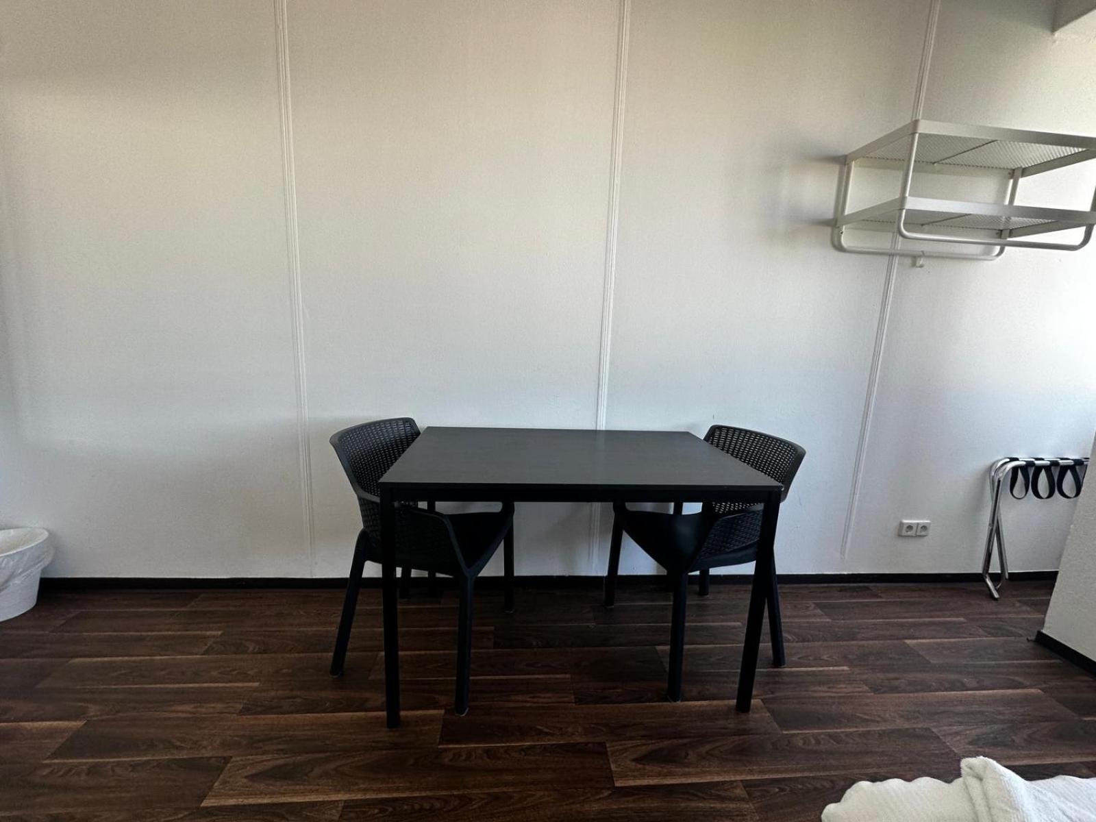 Es gab zwar noch einen kleinen Tisch und Stuhl aber bis auf eine kleine Plastik- Hakenleiste keinen Ort für Garderobe , Gepäck und Schuhe. Es gab nur eine, von der Tür aus bedienbare Lampe die sich an der Decke über dem Bett befand.