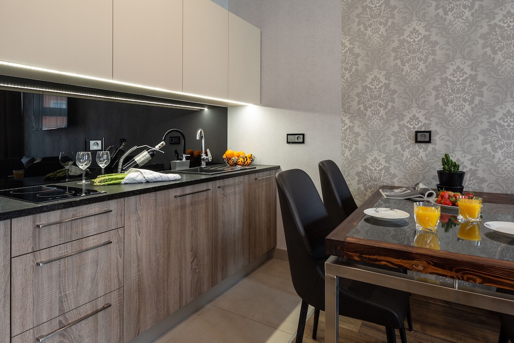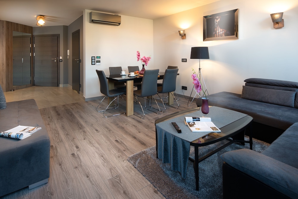 Mycket fräsch och modern lägenhet med allt man behöver. Trevlig personal. Hotellet ligger precis vid torget och nära till stort utbud av restauranger. Dock var det svårt att hitta hotellet då det ligger i en gränd, taxin kunde inte kan köra ända fram.