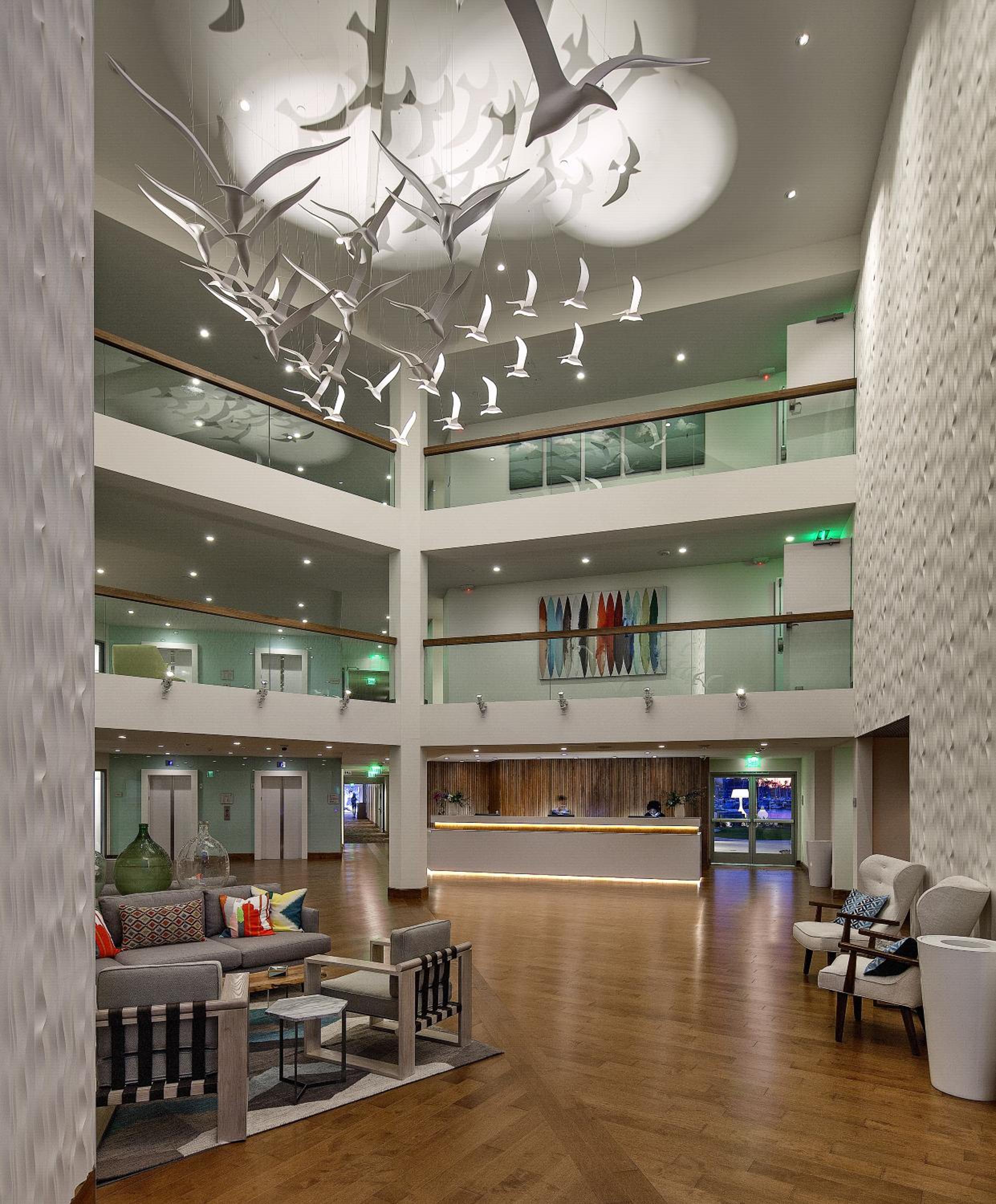 We had a very nice two-night stay at this hotel. The room was very nice - clean, nice big bath towels, very quiet HVAC, comfortable bed. The front desk staff and housekeeping were very courteous and professional. The location of the hotel was nice - right on the marina, with a nice shopping center within walking distance and a nice walking path around the marina. I only had two small negatives: no ice machine on the first floor (had to go to the bar (when it is open) or the ice machine on the second floor so it was inconvenient for us since we were on the first floor; the restaurant in the hotel was not prompt in opening; it was supposed to open at 7:00 in the morning, but we had to get the kitchen staff attention to get seated and served.