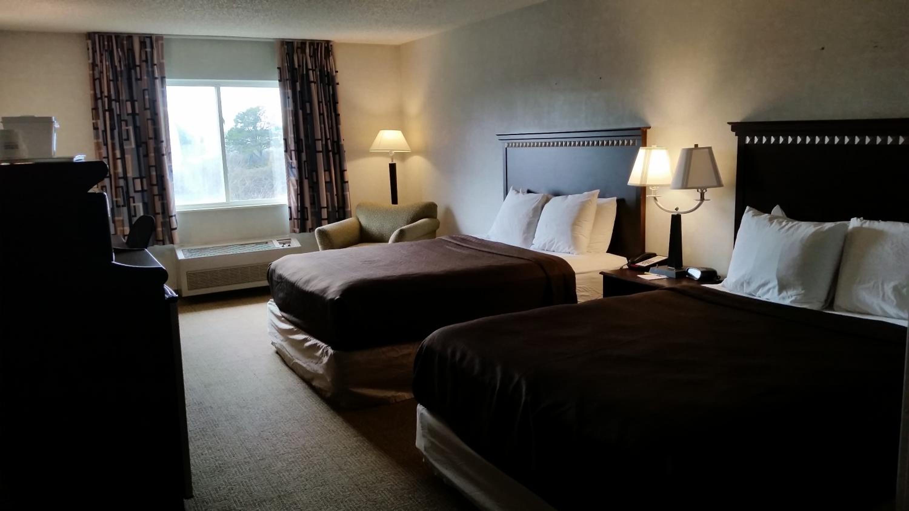 Hotel needs to be fully renovated. Wall paper peeling off the walls. Carpet missing. Trim pulling off the walls. Mold in the hallway and bathroom. Pool was being repaired but no notes on the website or at the front desk. I found out by asking what the pool hours where and then told after checking in that it was out of service. The pool was the sole reason we booked here. The toilet in room 201 was broke. The flapper in the tank doesnt close all the way so the toilet ran all night. We had to get 2 room bc of how many kids we have and we had the oldest 2 stay in that room. They didn't know that was a problem and didnt tell us until we went to check out. Their dad lifted the tank lid and fixed it. But it will only happen again once the toilet is flushed. The telephone in that room also doesn't work properly. We picked it up to call the front desk and there was no dial tone or any noise at all. When I walked down to the front desk she said she could use us. Which is weird bc I couldn't hear her. Room 231 does not have a smoke alarm nor does it have the plaque of the room number. We will not be back. Wish we would have stayed across the st at the best western. I took more pictures but i can only add 4 of them.
