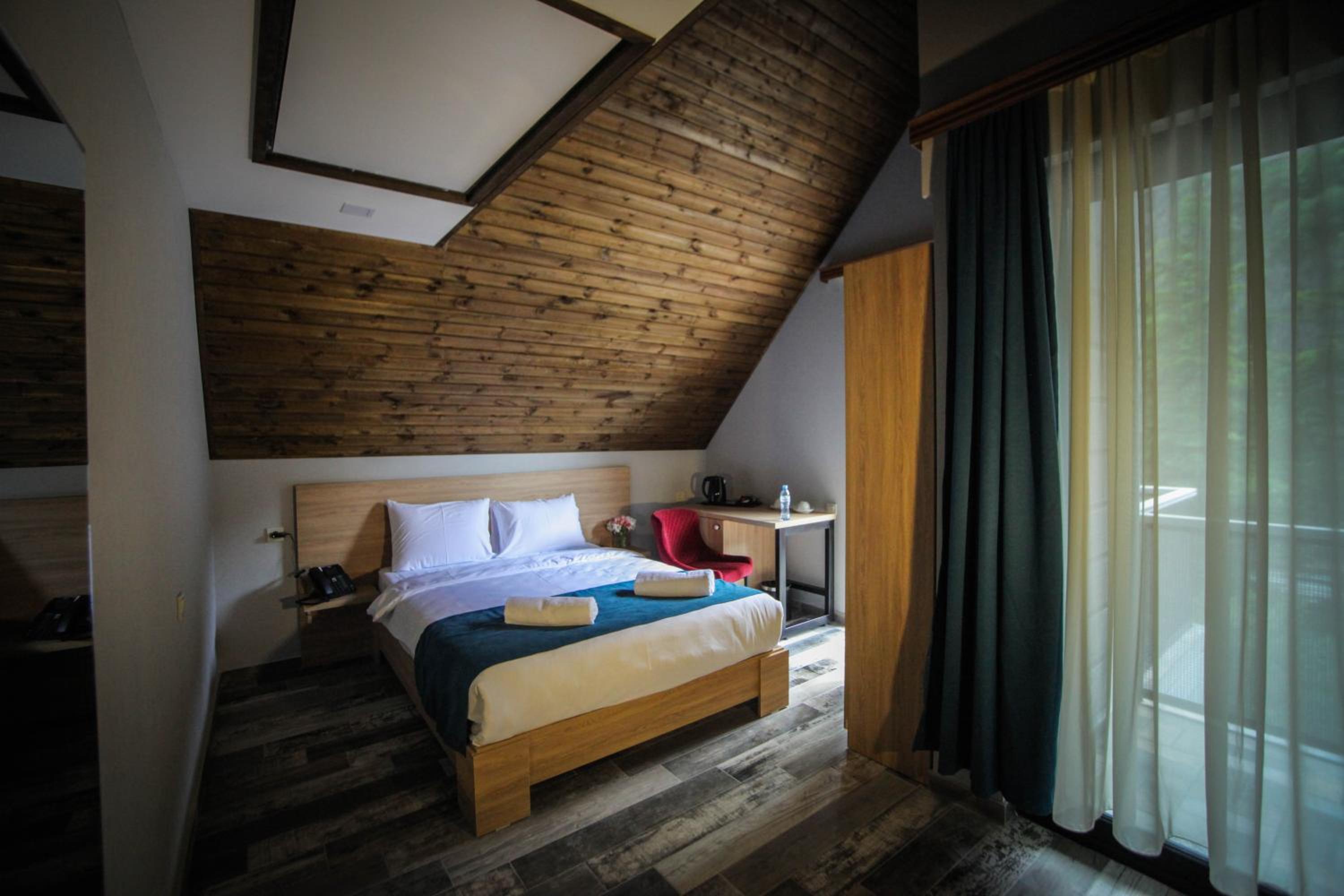 Borjomi UnderWood offers air-conditioned rooms with modern amenities such as a flat-screen TV, minibar, and private bathroom. Some units even boast stunning city views and a cozy patio for relaxation.