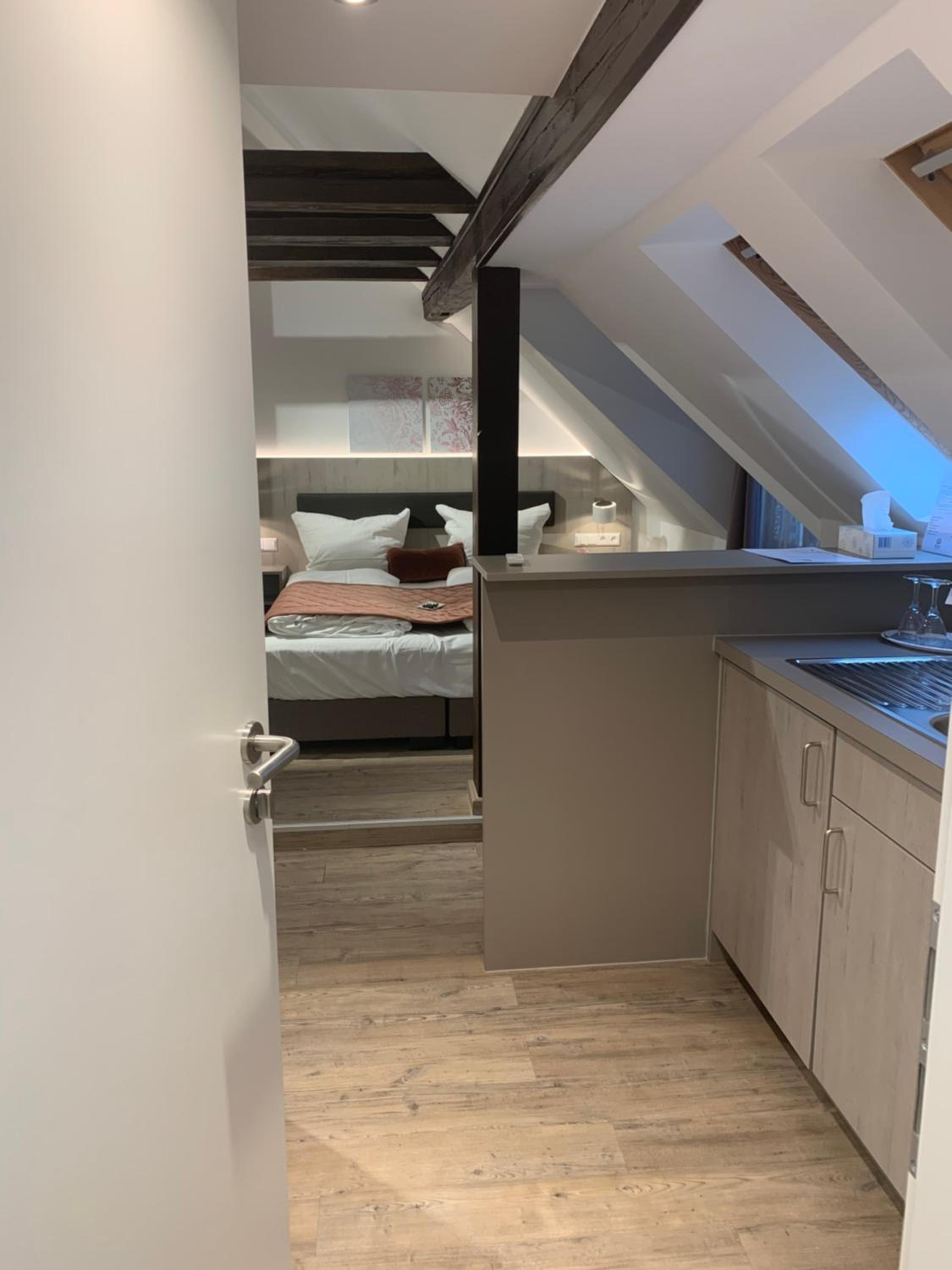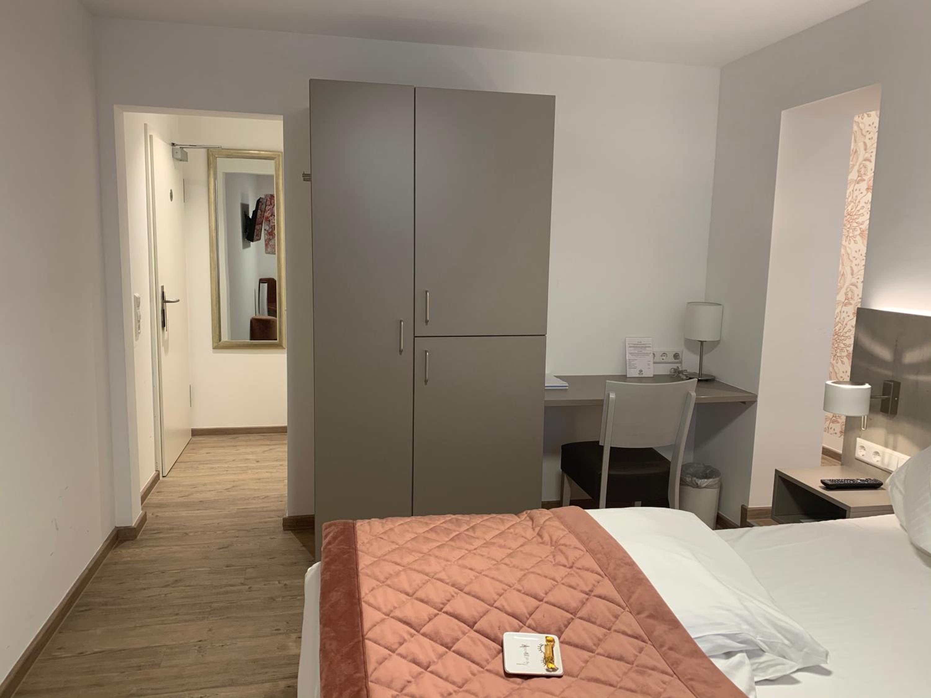 Unkompliziertes Ein- und Auschecken. Gutes Zimmer und Bad. Parkplatz findet man mit Glück auch um die Ecke.