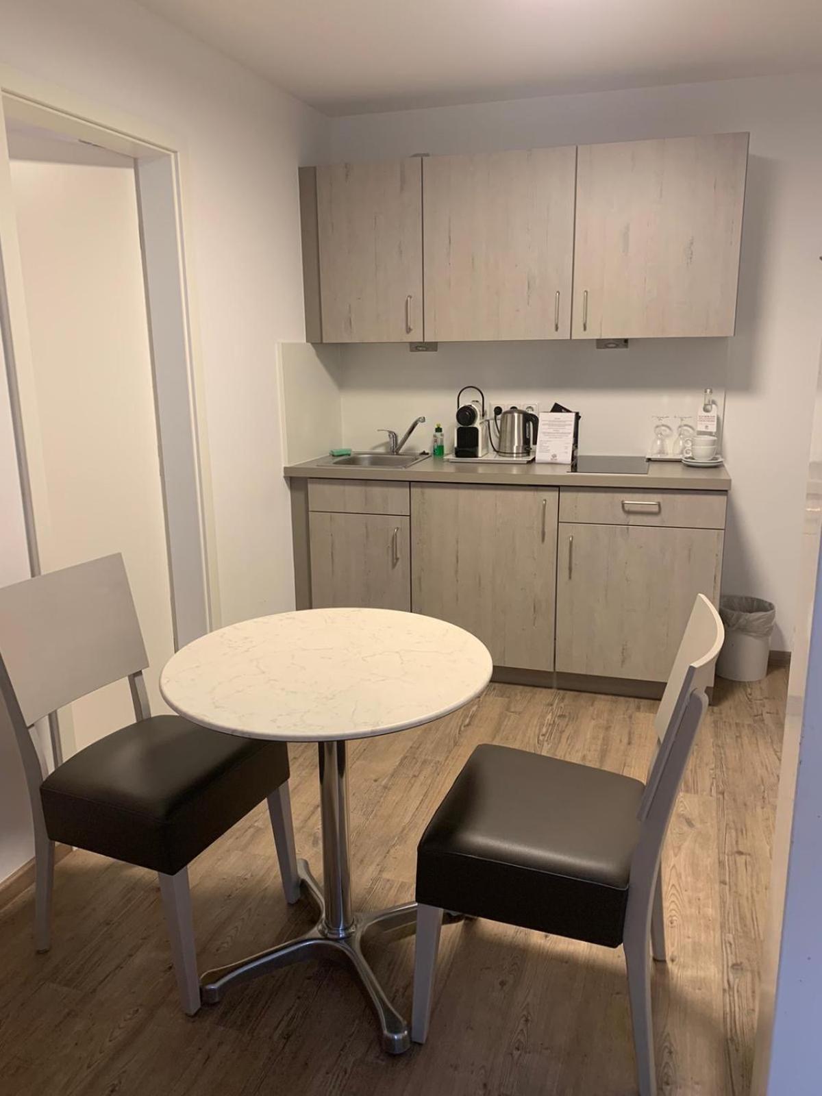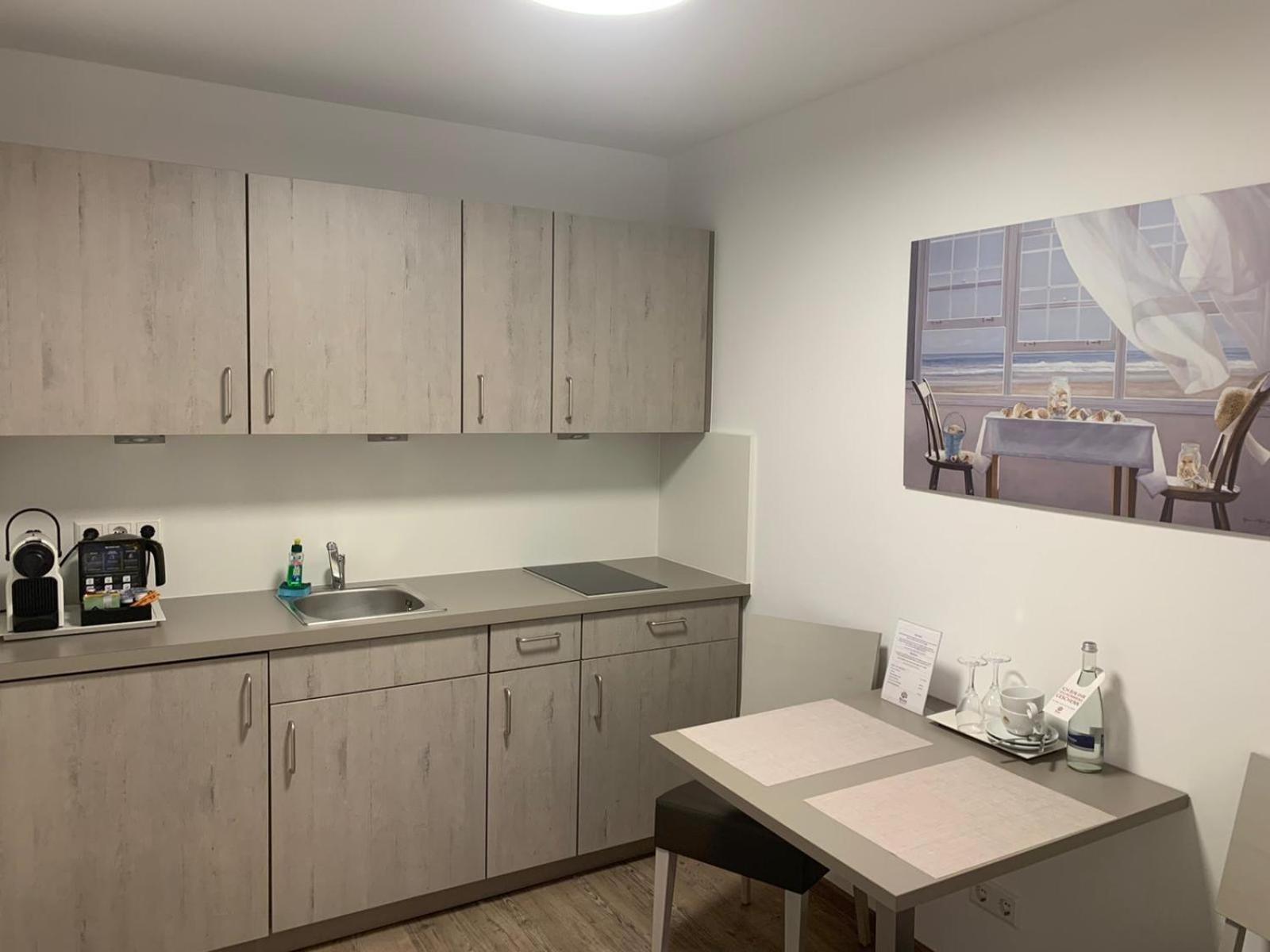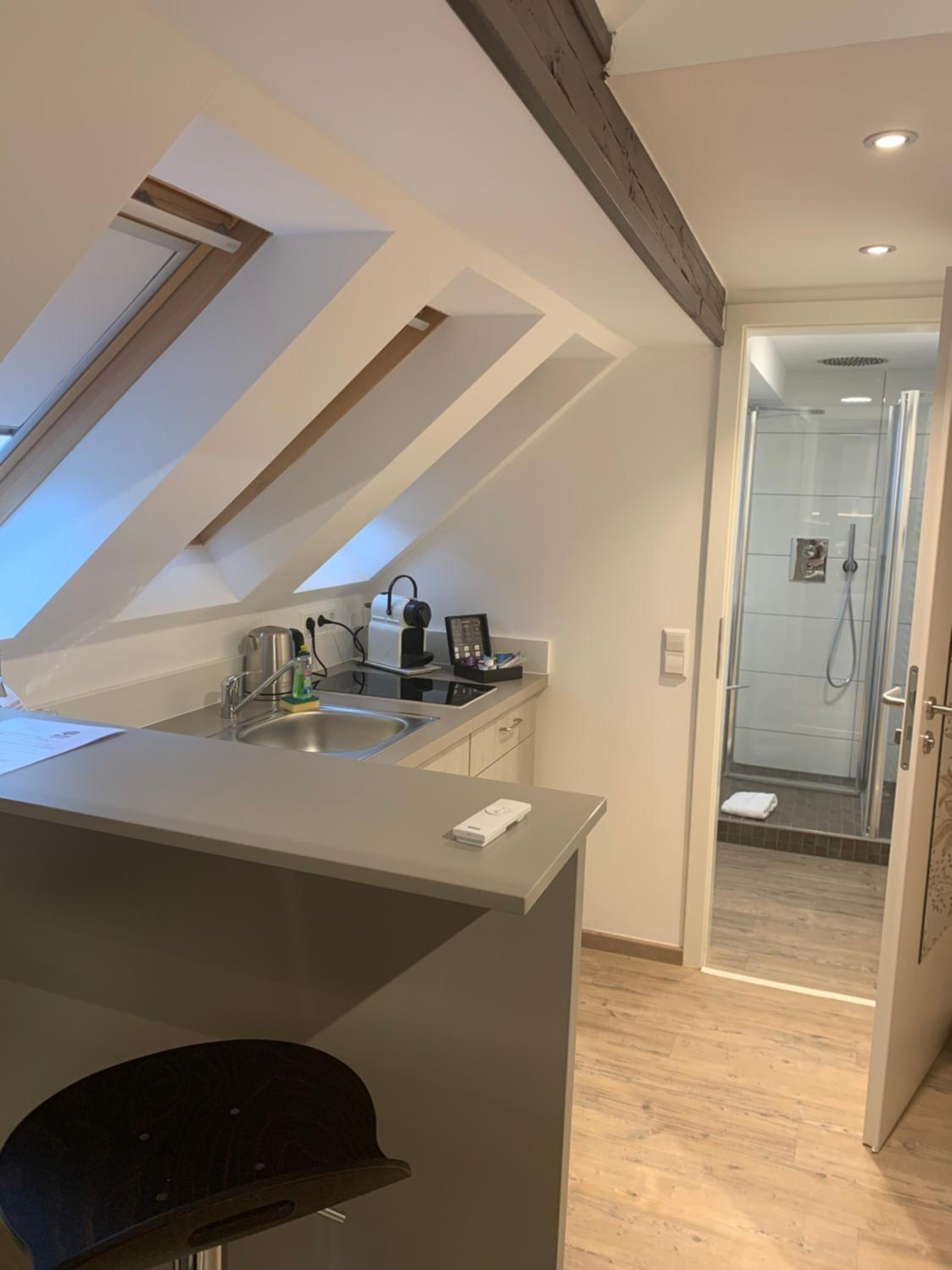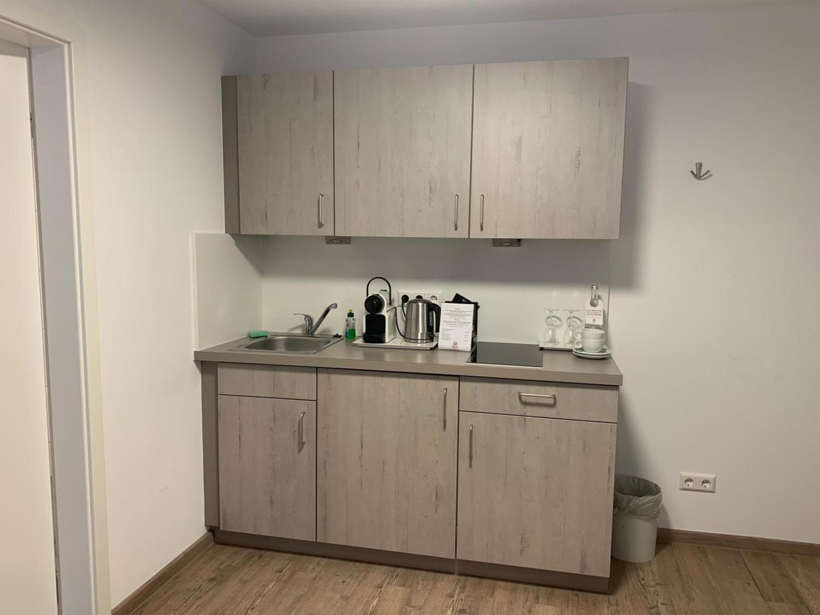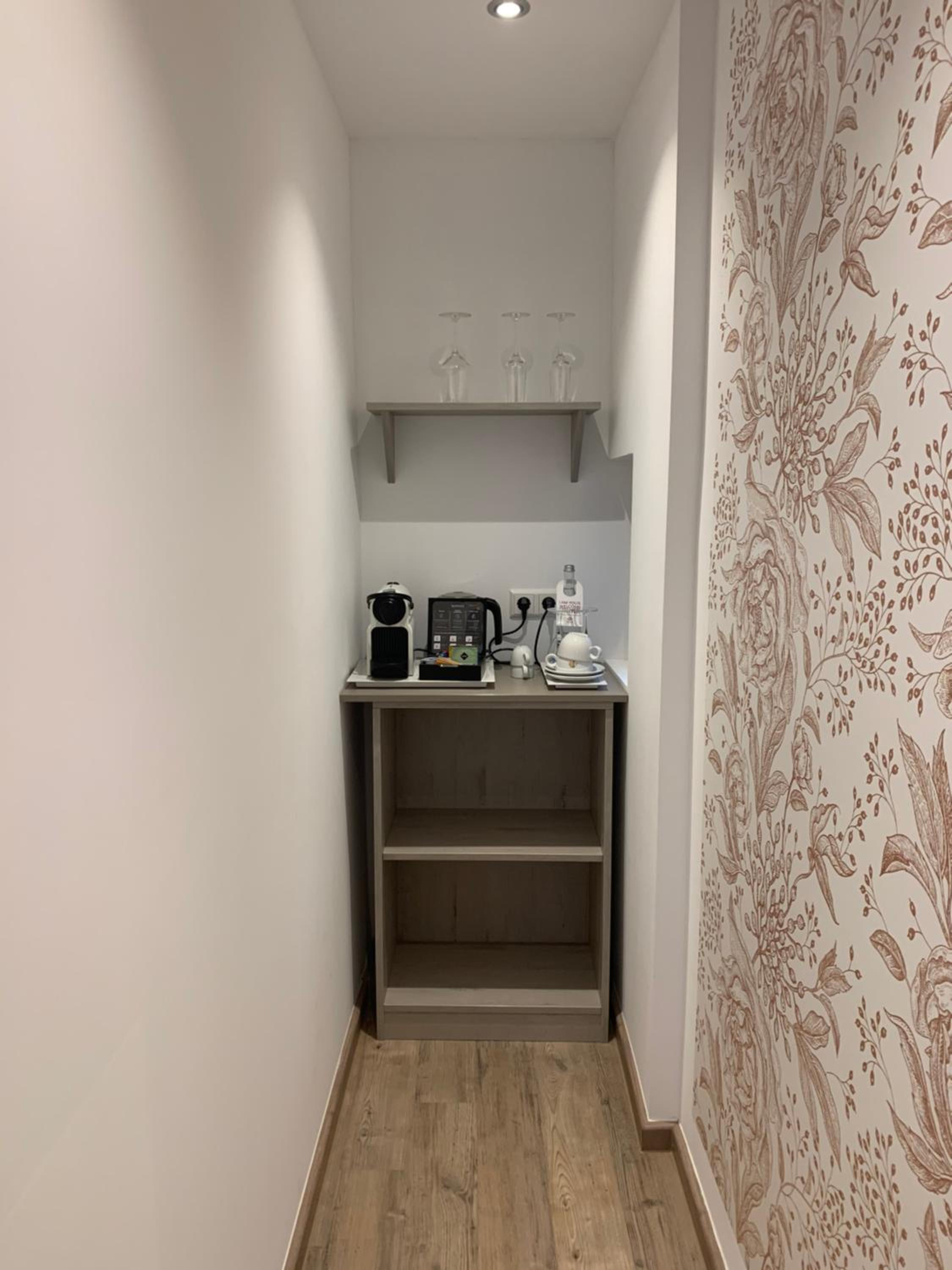 Nespressomaschine, Wasserkocher und richtiger Kühlschrank erfüllt alle Wünsche.