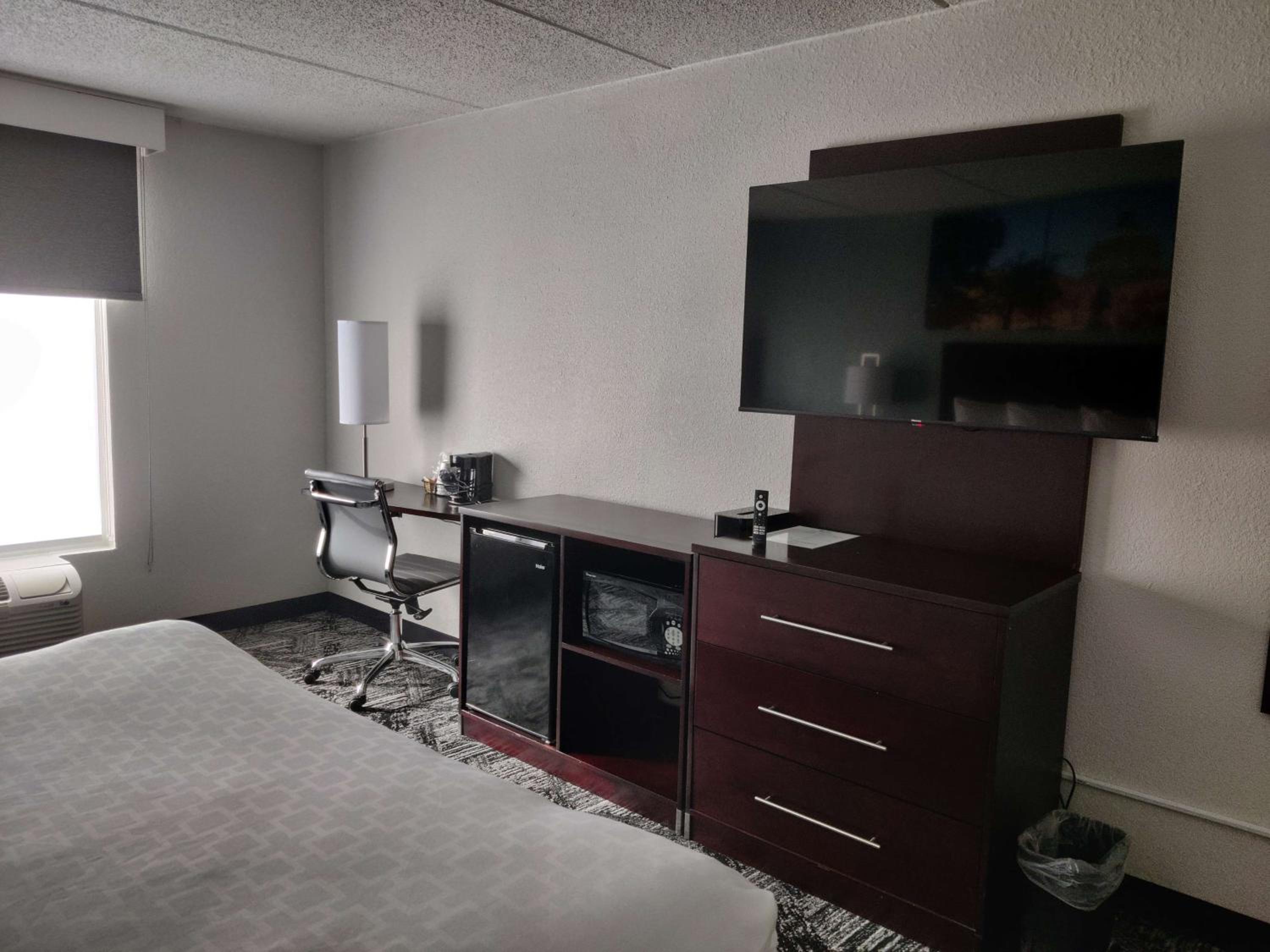No microwaves in rooms and also saw small bugs in bathroom and under tv