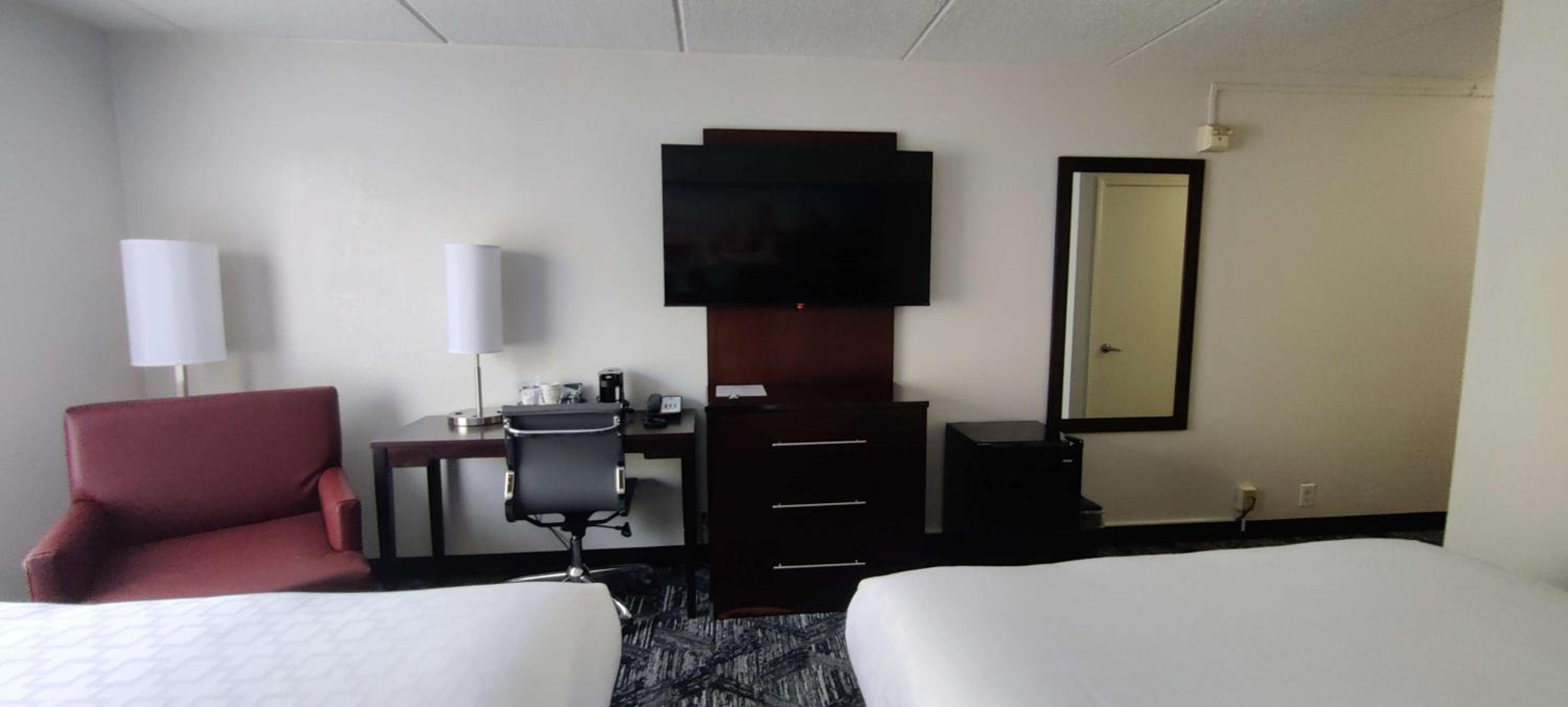 Each guest room is equipped with essential amenities including a microwave, refrigerator, and coffee-making facilities, ensuring a comfortable stay for all visitors. Additionally, the hotel provides a desk for guests to work or plan their itinerary.
