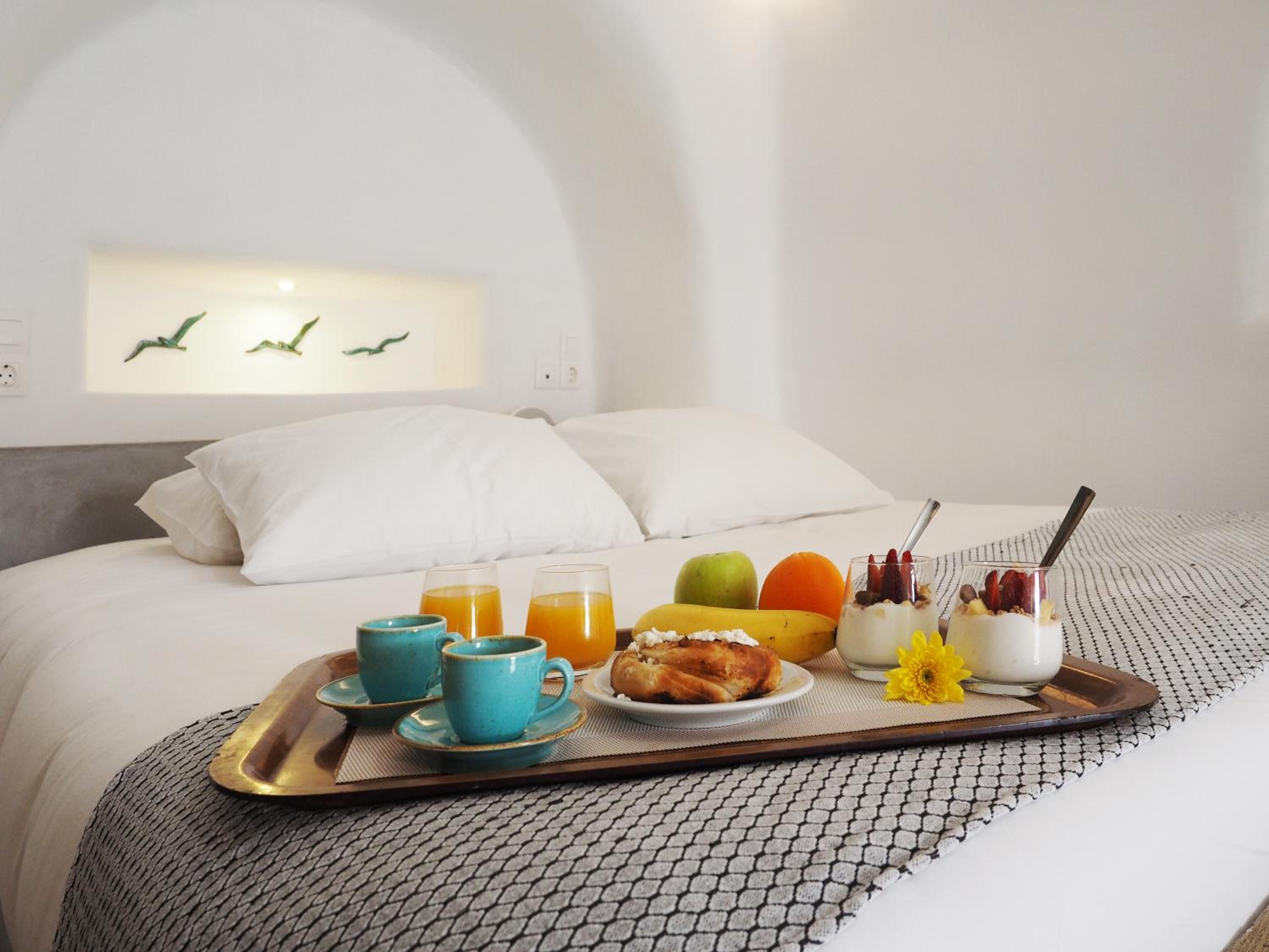 The complementary breakfast menu was huge and chef is one of the greatest. The location is a bit uphill and 30 mins walking distance to great caldera view at Oia. There is Finikini bus stop nearby, but better to walk rather than waiting for bus.