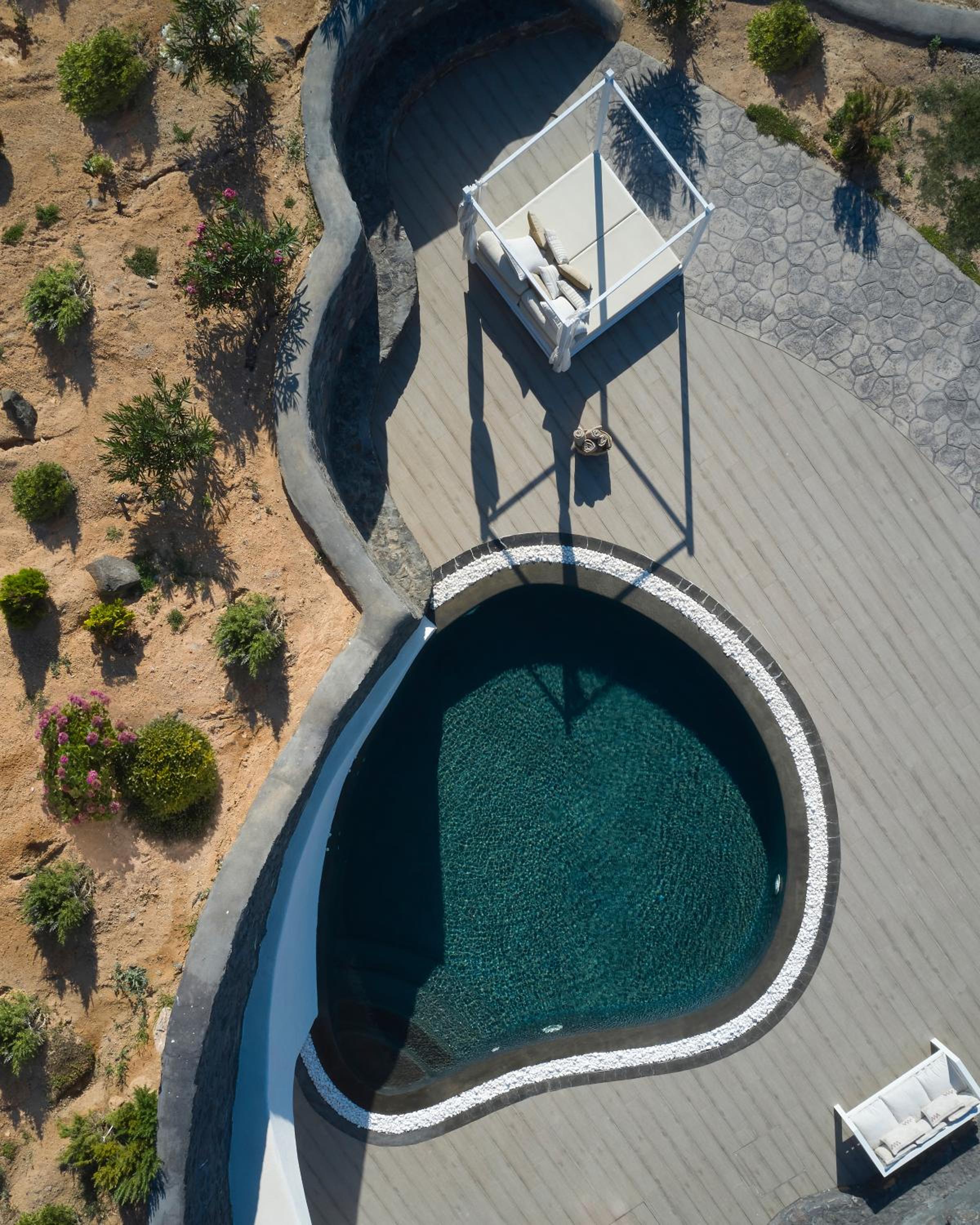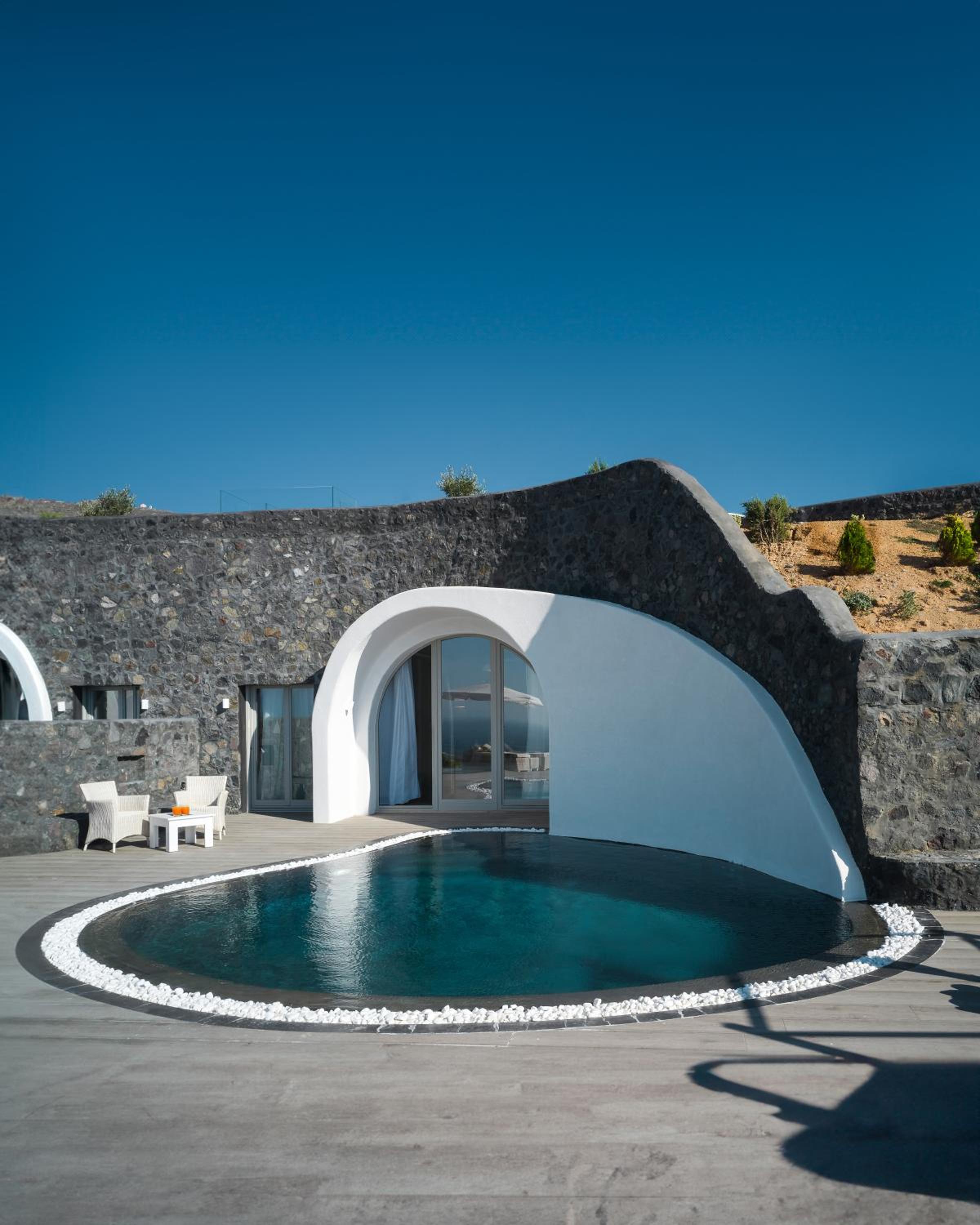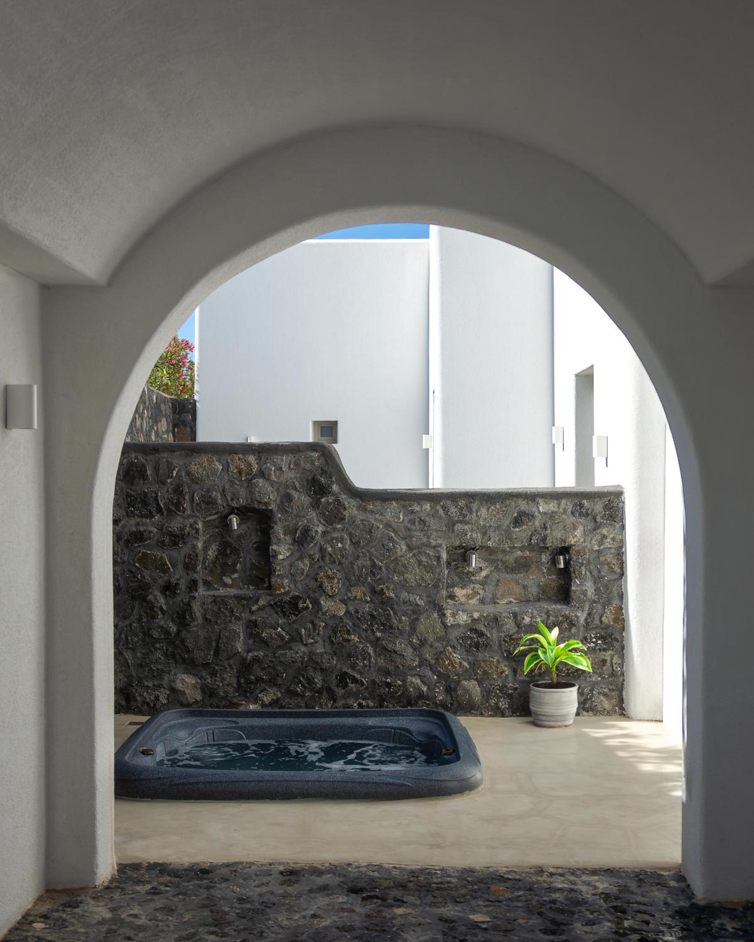 Rustig gelegen in Finikia, net buiten het drukke Oia. Een fijne balans tussen rust en levendigheid. De suite was ruim en netjes ingericht, met een privé terras op de ochtendzon met uitzicht op de land en hot tub met middag en avondzon en uitzicht op zee, maakten ons verblijf extra fijn. Het personeel was warm en attent, altijd beschikbaar zonder opdringerig te zijn. Elke ochtend begon met een vers ontbijtbuffet en a la carte, geserveerd met zorg. Het zwembad was een rustige plek om te ontspannen, met comfortabele ligbedden en uitzicht op de zee.
