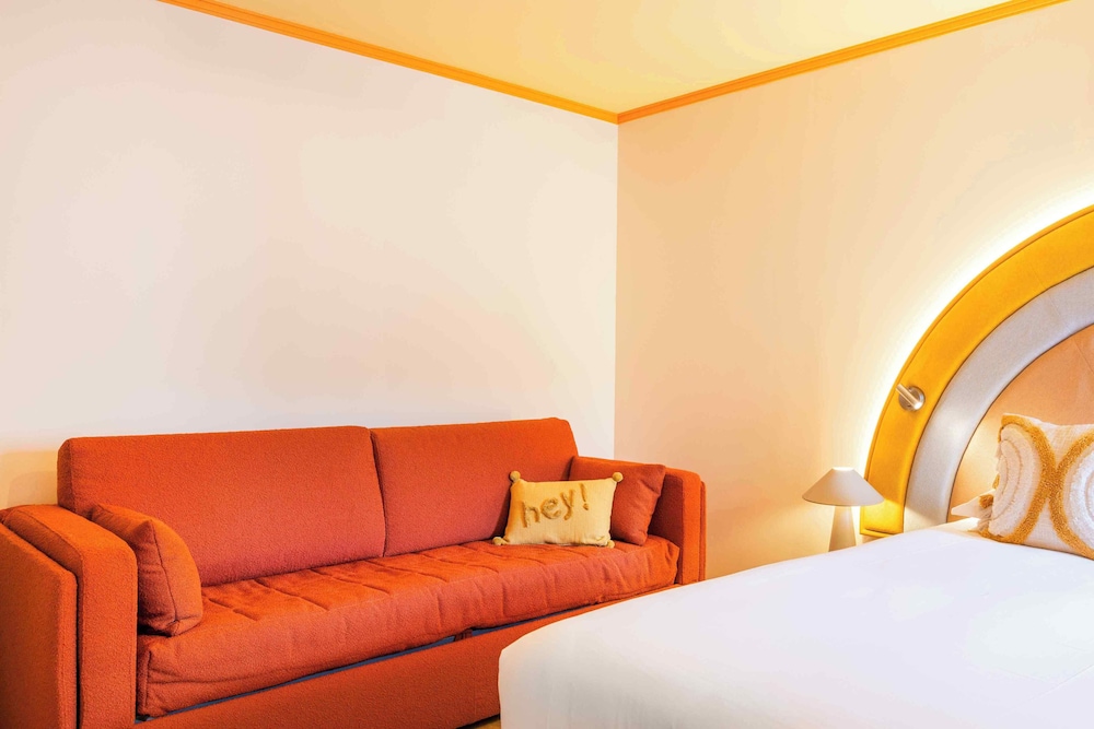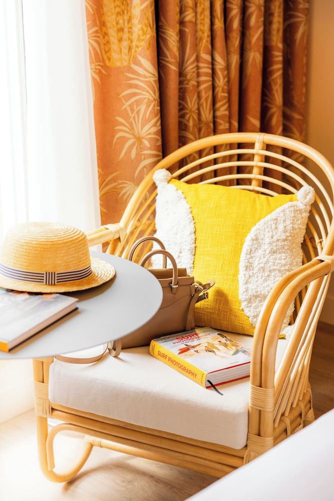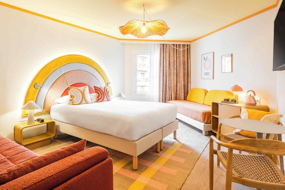 A beautifully decorated, Californian themed hotel. The location is good for public transport. close to tram, buses and Nice Riquier train station, although it is a 15-20 minute walk to the Promenade de Anglais - not ideal if you prefer to be close to the beach. Staff were friendly; I did receive a message on the morning stating our room would be available earlier than our check-in time, only to find this wasn't the case when we arrived. Loved the little retro touches in our room. The door to (separate) toilet is opaque, but as there is another closing door between that and the main bedroom this wasn't an issue. Didn't notice any noise, even when the karaoke was going on on our first night (we were third floor).