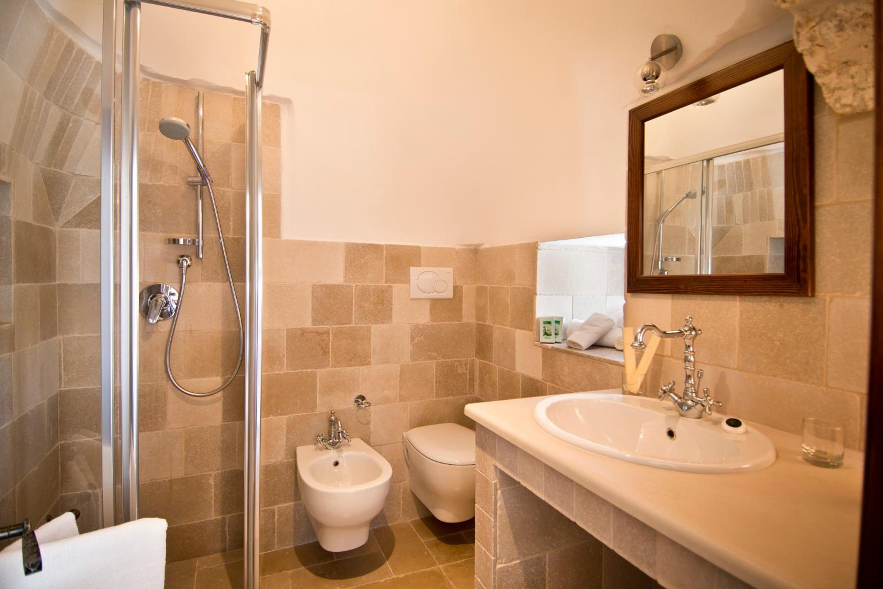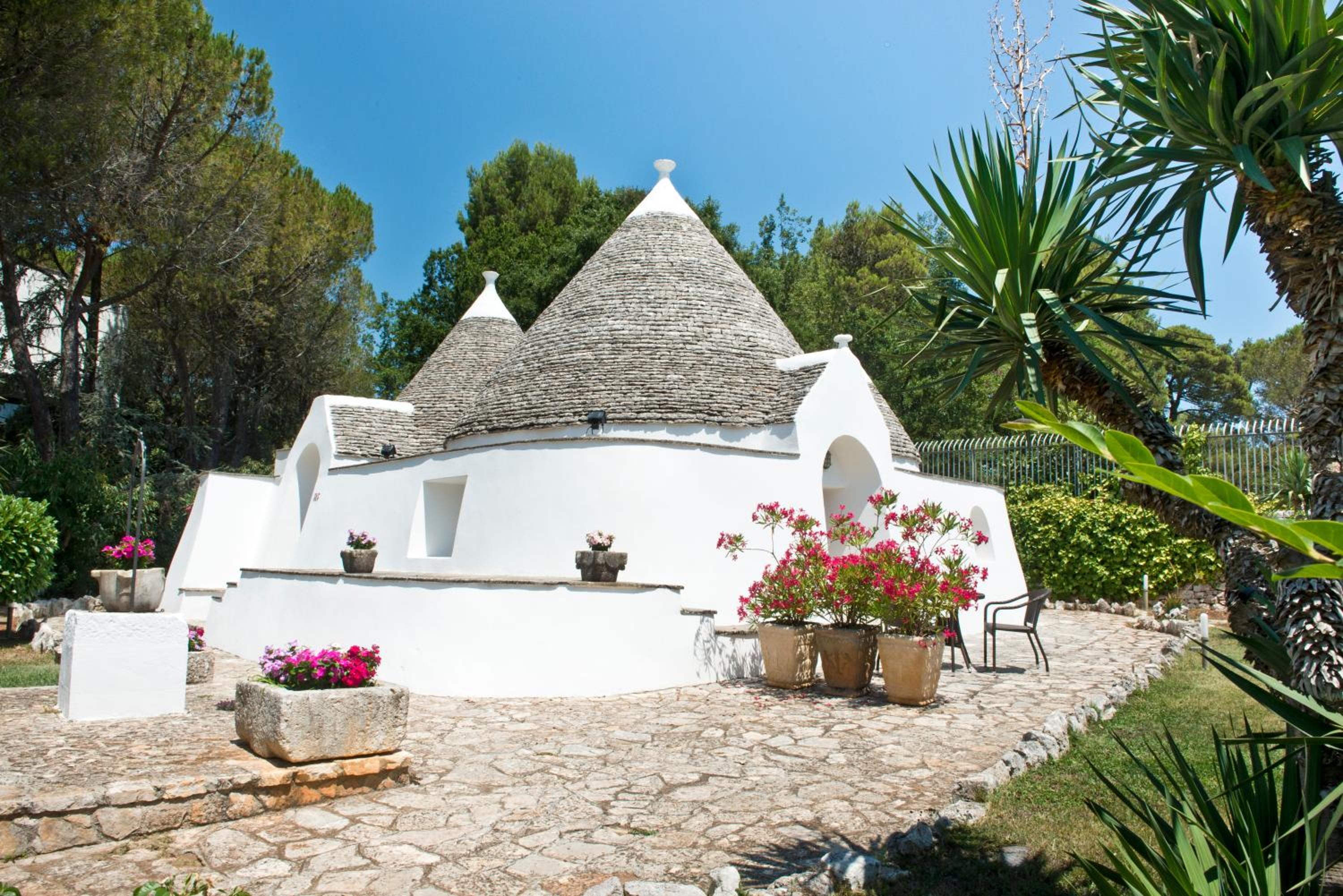 Guests can unwind by the swimming pool or explore the unique Trulli stone houses scattered throughout the property. For those seeking sun and sand, a complimentary private beach awaits just a short drive away, complete with sun loungers and umbrellas for extended stays.