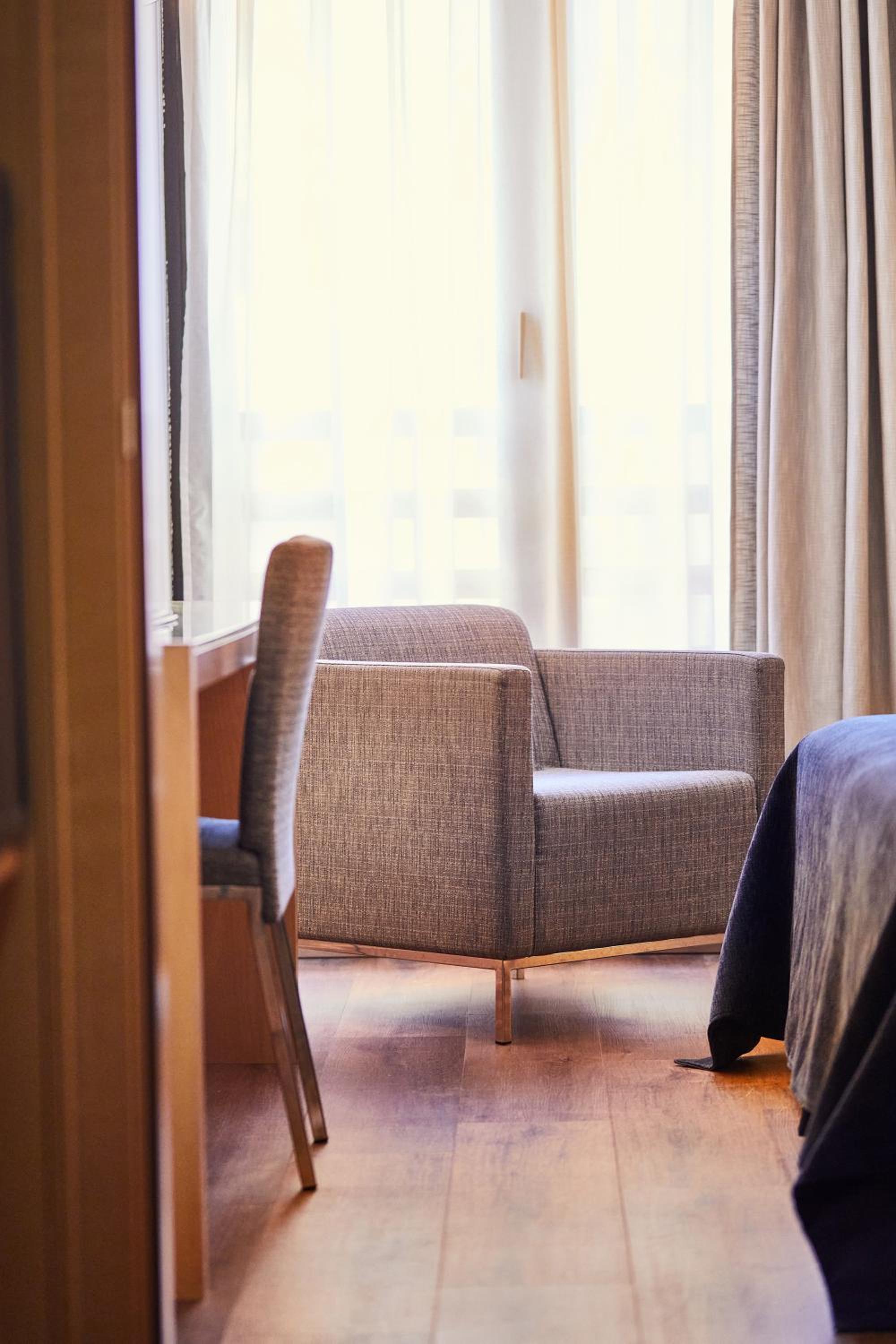 The Silken Ciudad de Vitoria boasts modern rooms set around an impressive lobby and a charming interior garden, providing a serene and welcoming atmosphere for guests.