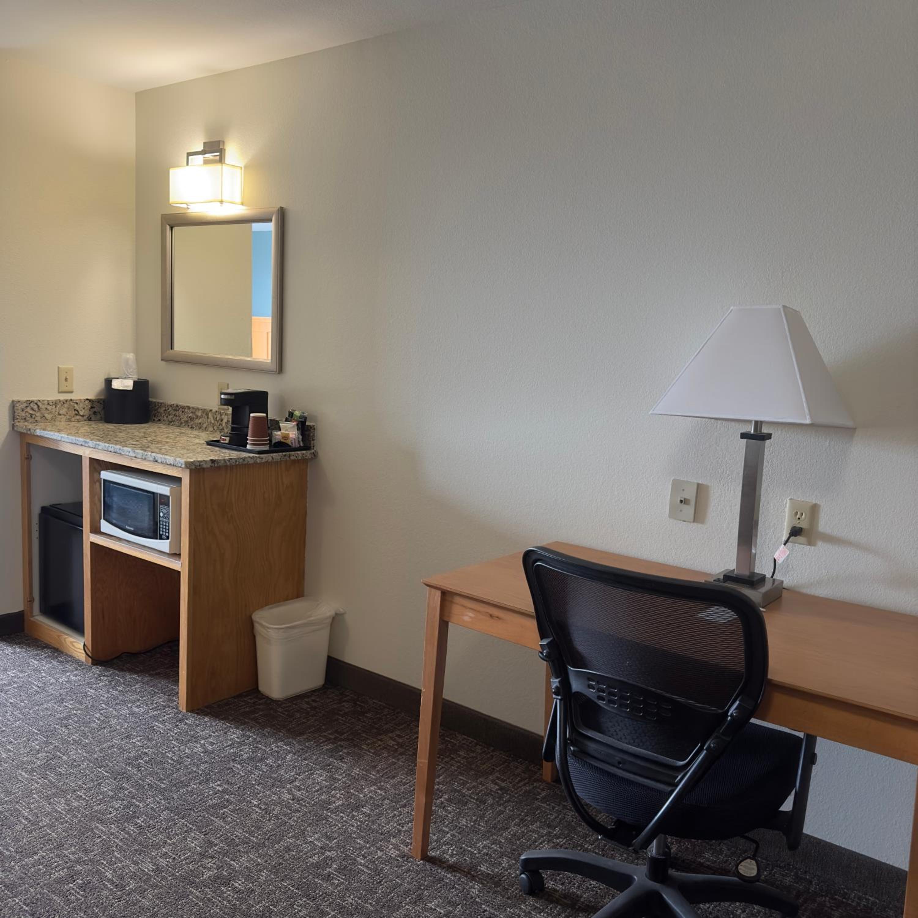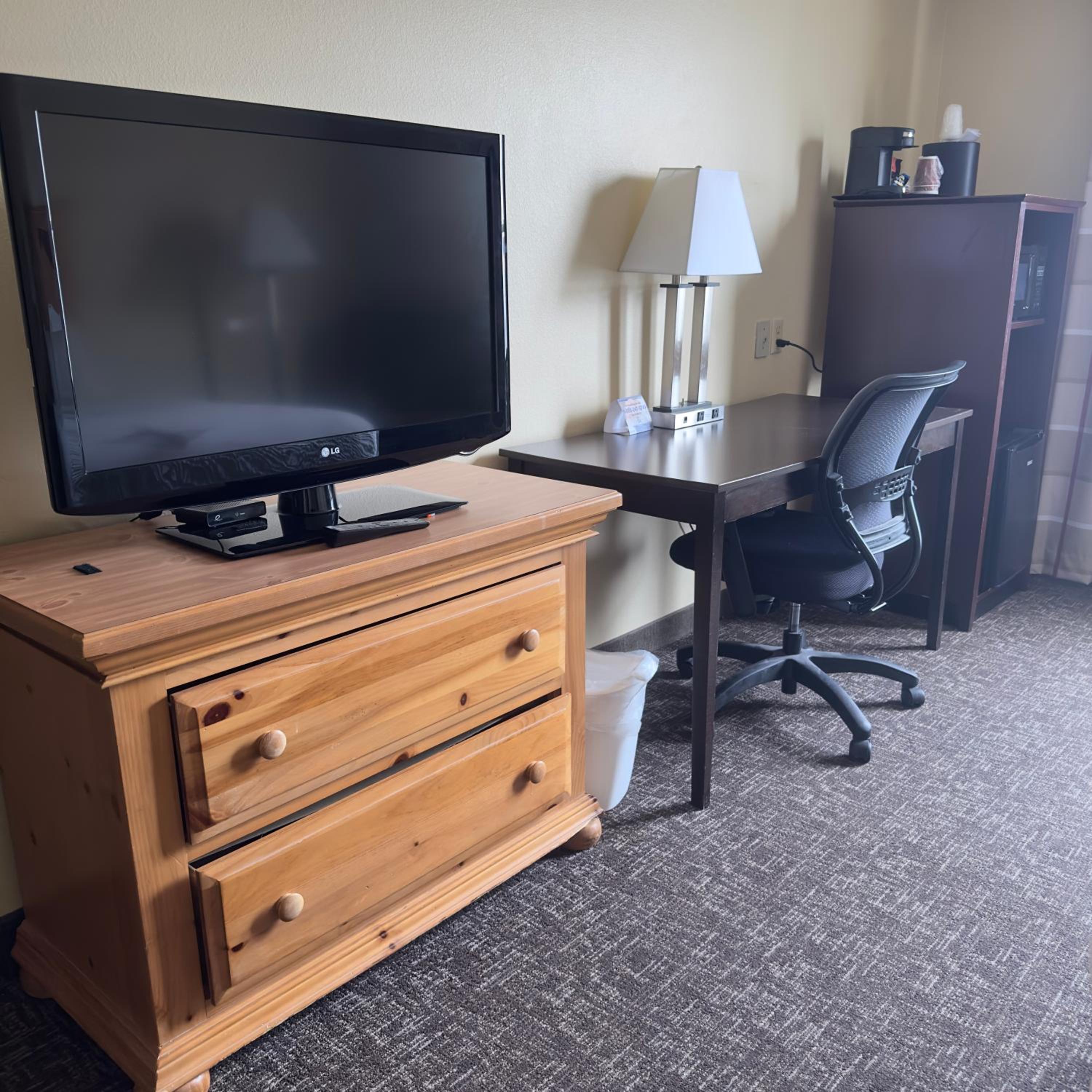 Despite recent snow and ice, it was easy to get into parking area, and especially easy to get to my room from outside side entrance.