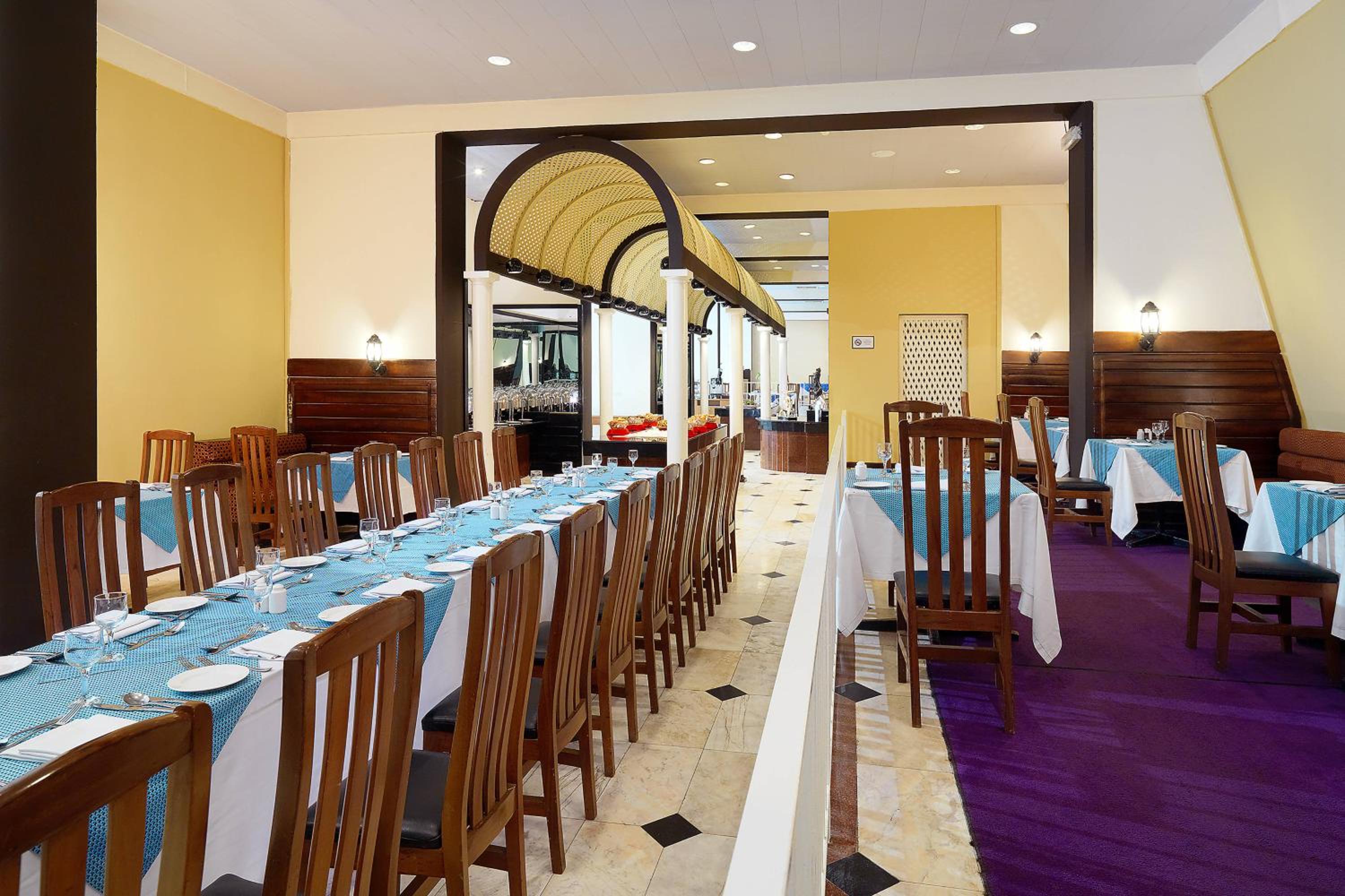 The location is good. But the restaurant connected to the hotel is exposed and outside the main building. These is no ambiance link to the mainbuilding. The seating looks old fashioned and aged