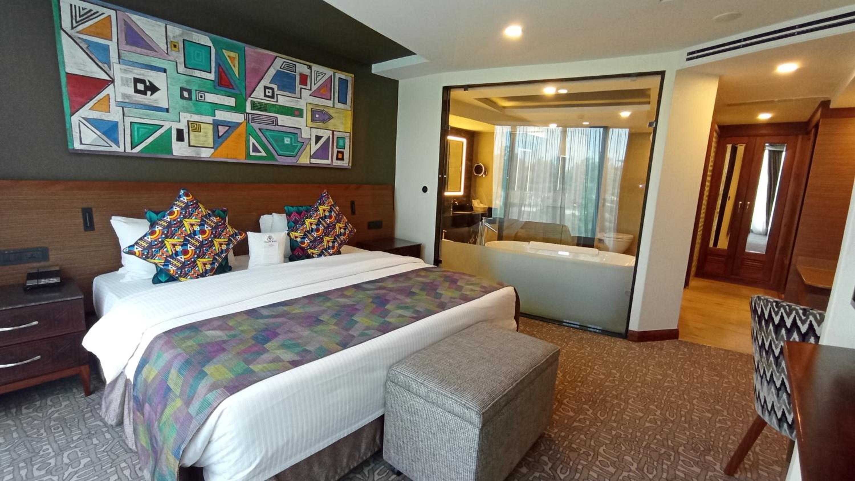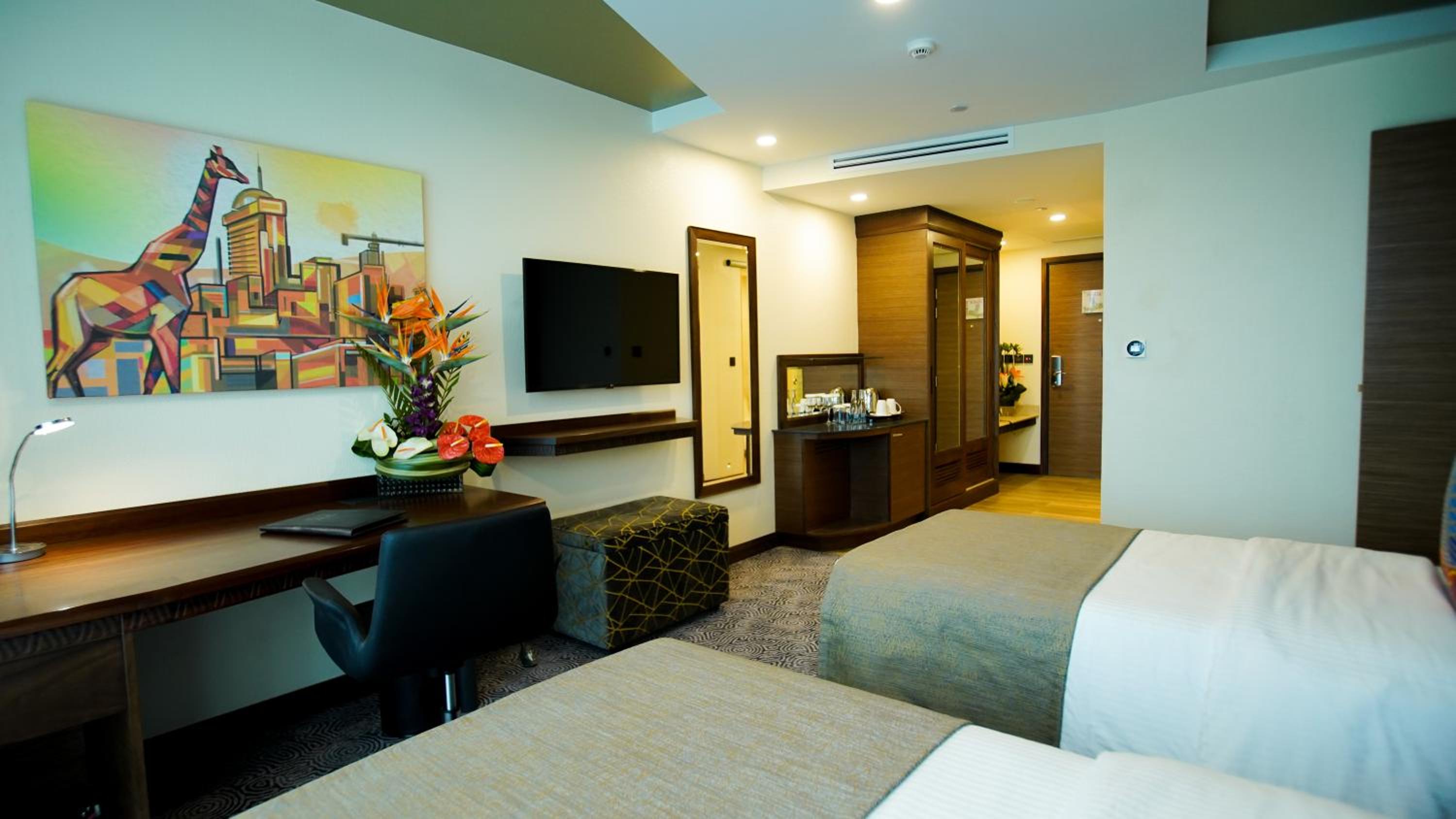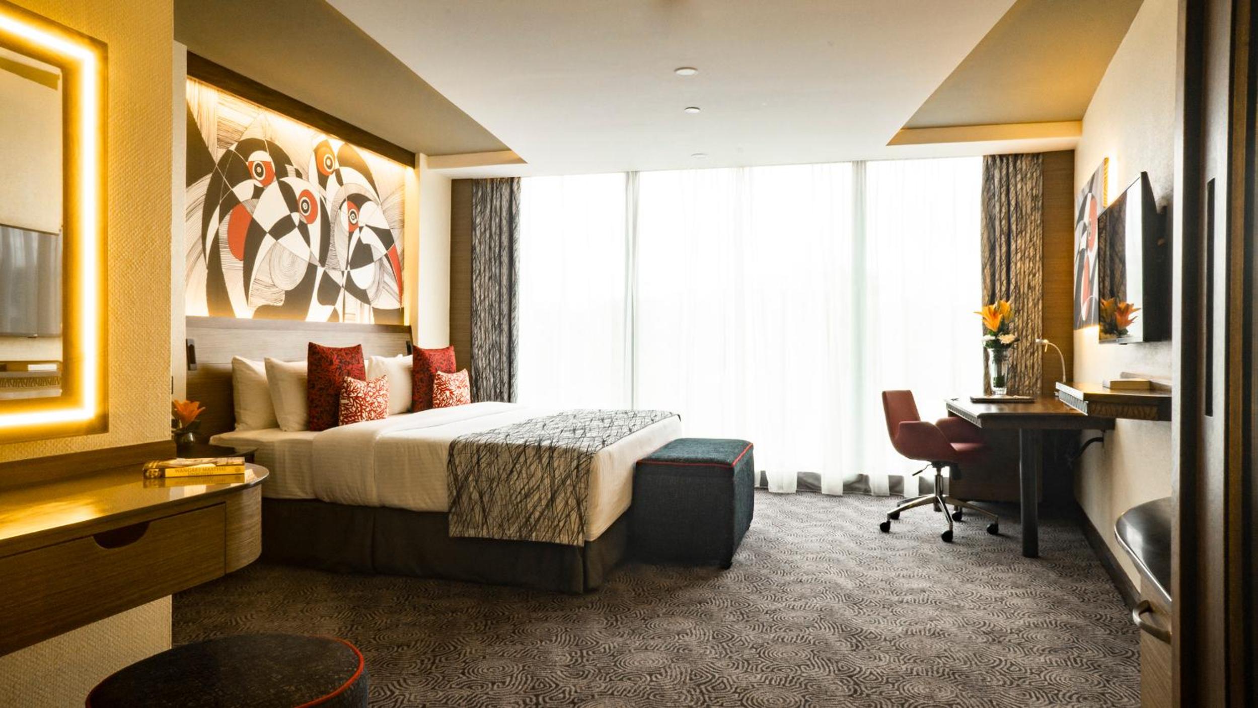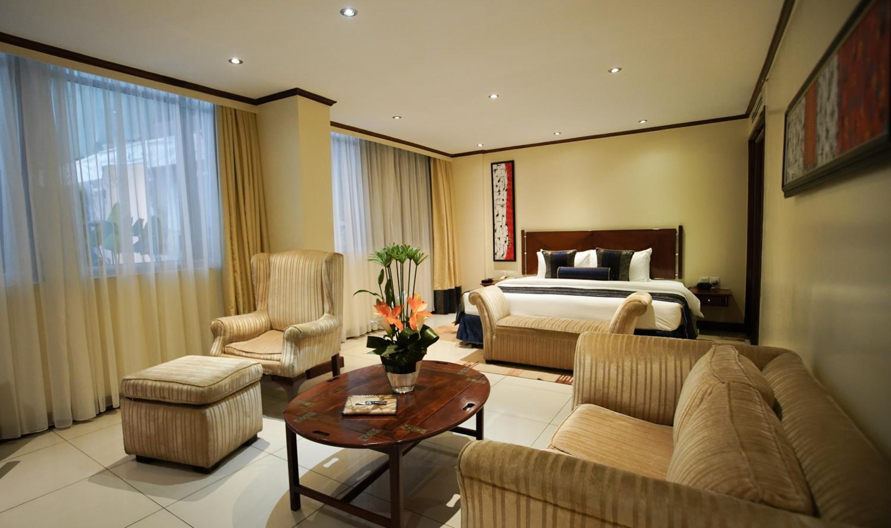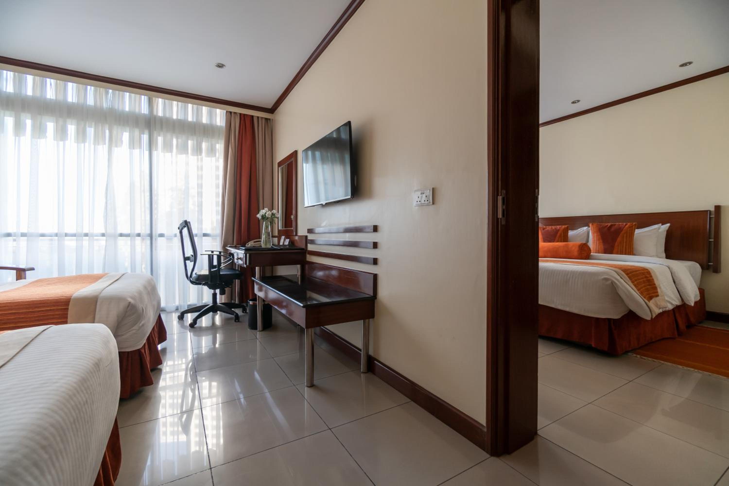 Indulge in individually decorated air-conditioned rooms at Sarova Panafric Hotel, each equipped with modern amenities for a comfortable stay, including satellite TV and a minibar.
