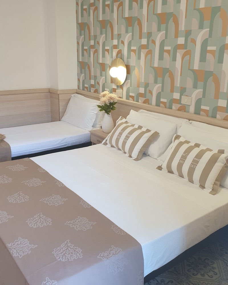 Availability and package information went as quick as a flash done by the owner Mrs Antonella and Mr Andrea. I had to call from abroad to get down payment and booking confirmation in spite of an email request. We were warmly welcomed by Mr Andrea. Rooms are clean. Restaurant, we appreciate the kindness of Mr Giuseppe however whole staff is GREAT, kind, flexible, patient with kids !!! Food quality is excellent and quantity is more than enough, even if pizza or piadina are not available if you reach the restaurant three minutes after its opening; but this is due to grumpy people therefore I suggest to avoid buffet service. Parking=OK, Beach=OK, TV=some trouble. Free WIFI=OK. Air C=OK. We shall be back next year.
