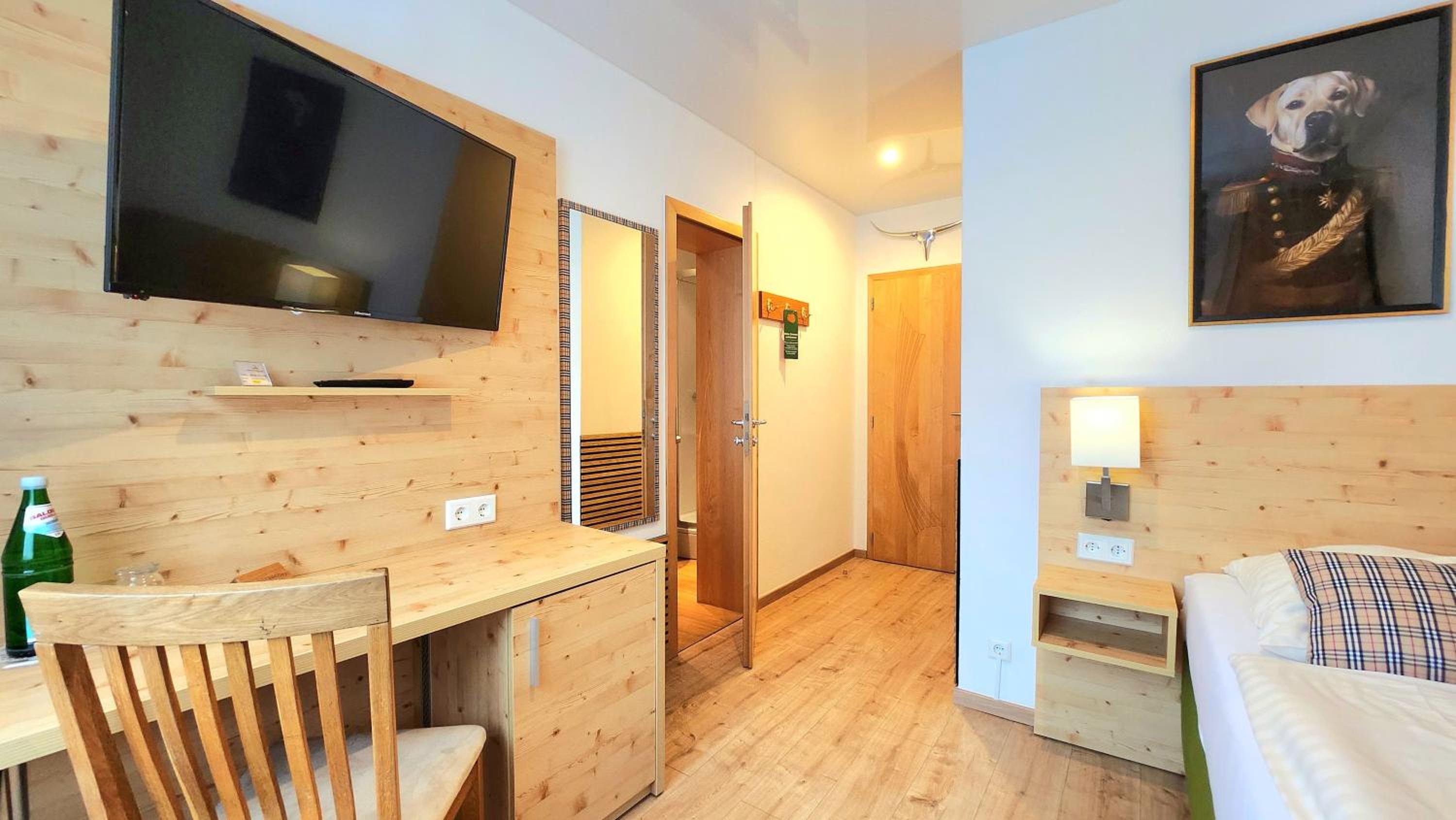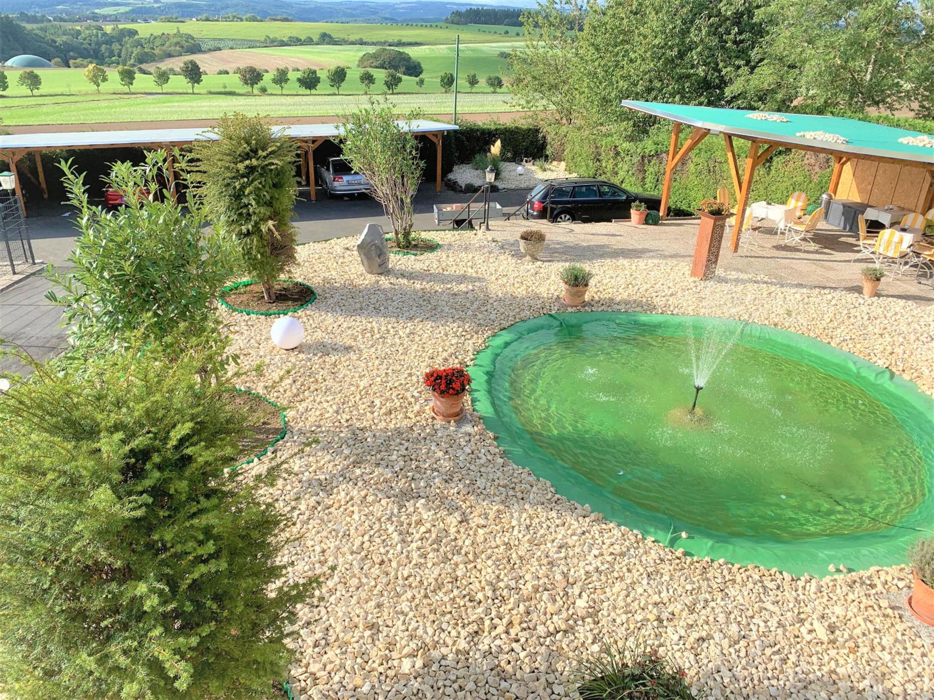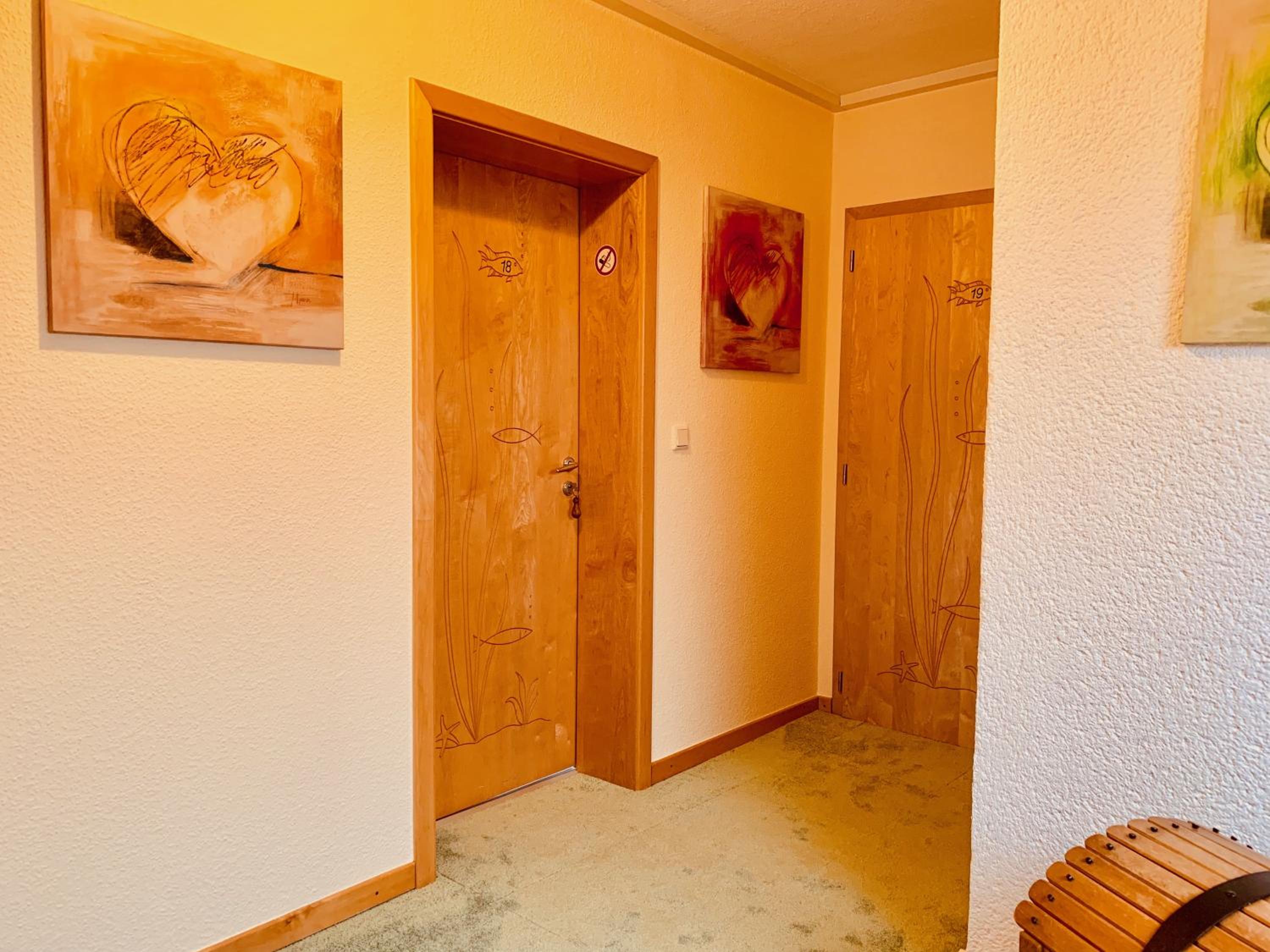 Hele gastvrije ontvangst en fijn achterom parkeren onder een overkapping. Ook het ontbijt was compleet en het hotel zelf heel verzorgd en met aandacht ingericht. We hebben een fijne wandeling gemaakt, omdat de locatie ook aan het Traumpfad ligt.