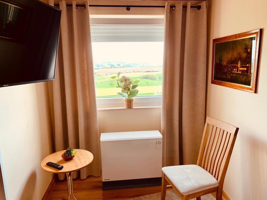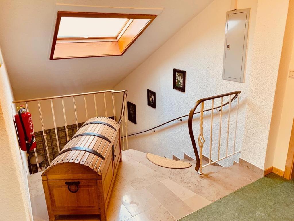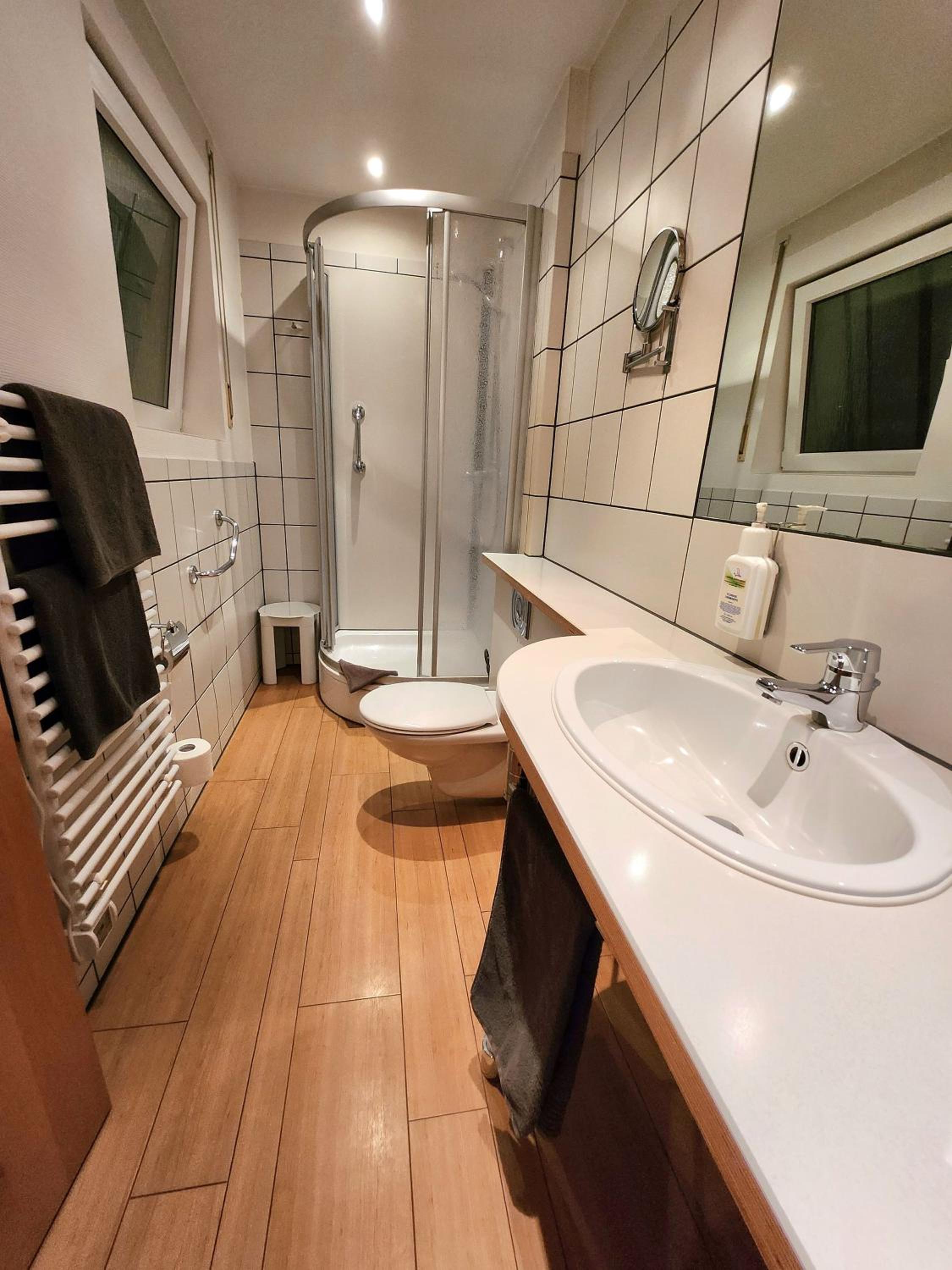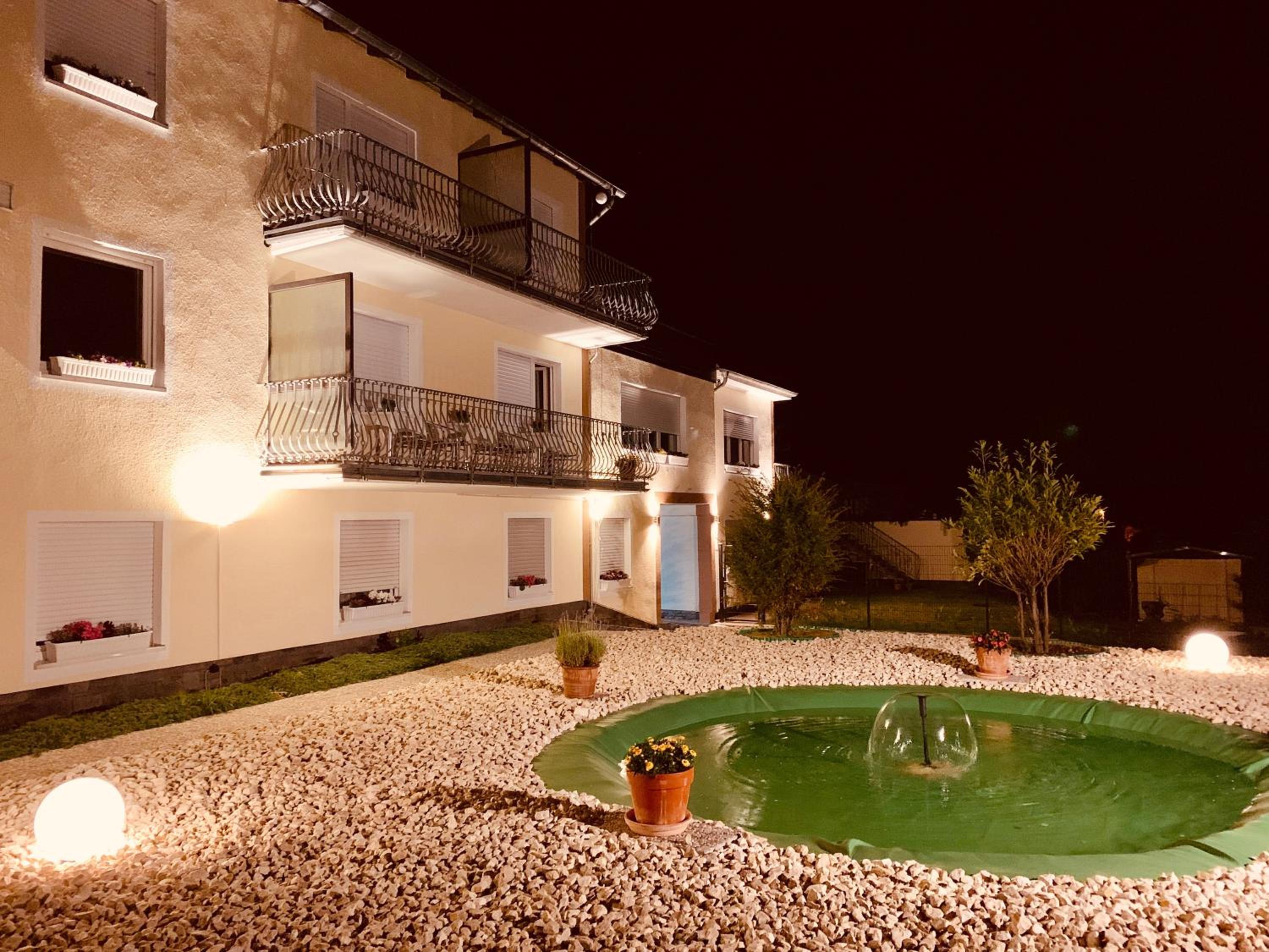 Hele gastvrije ontvangst en fijn achterom parkeren onder een overkapping. Ook het ontbijt was compleet en het hotel zelf heel verzorgd en met aandacht ingericht. We hebben een fijne wandeling gemaakt, omdat de locatie ook aan het Traumpfad ligt.