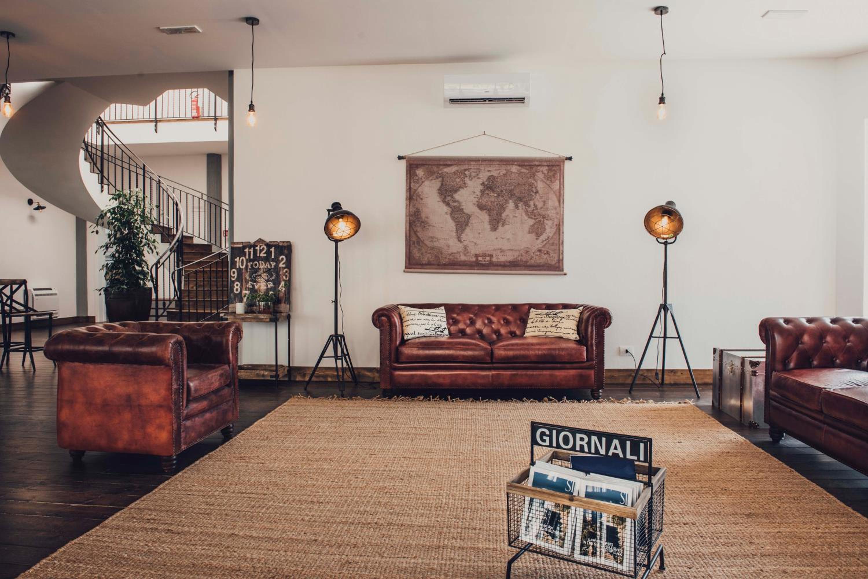 Spazio comune carino e con uno stile industriale particolare per il contesto.