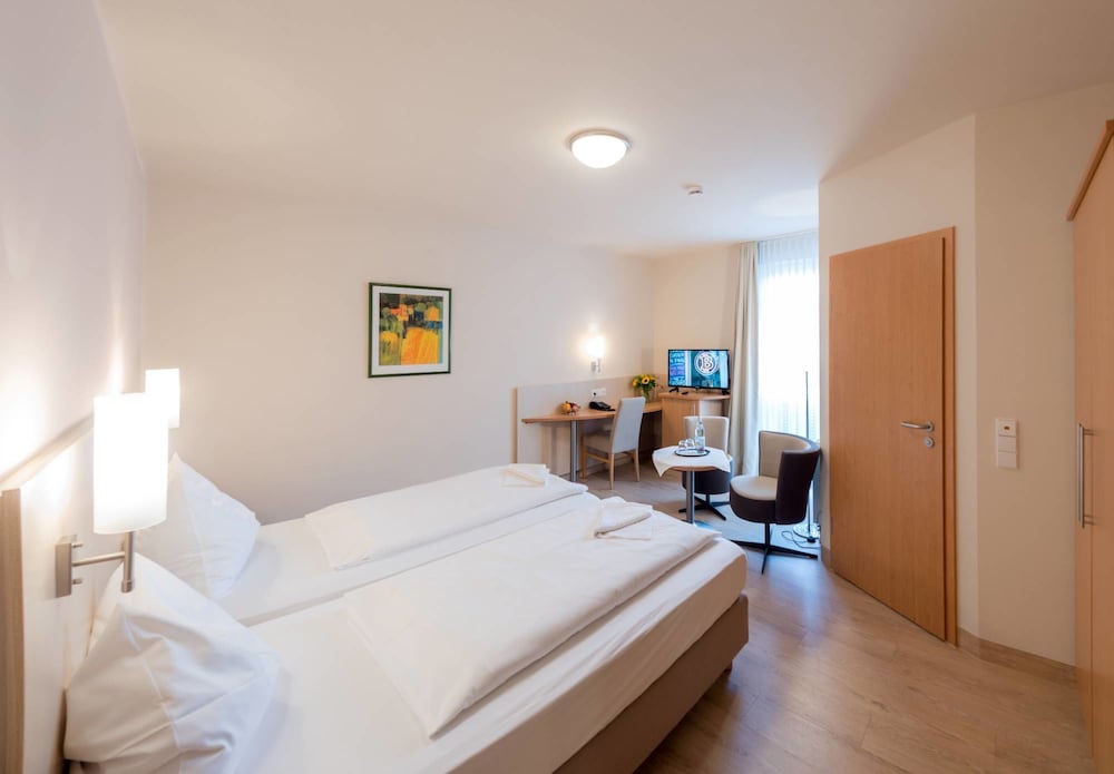 The hotel was great! Our room had a little balcony. The room was spacious and the bathroom was good size. The breakfast was fresh, with lots of options of meats, cheeses, breads, yogurt, and the staff prepared eggs of choice. Parking was available, But very tight spaces. The restaurant attached, for supper, was only okay. Walking into the town was so easy and there were lots of great restaurants nearby. We drove into Heidelburg old town and visited the castle during the days and it was a lovely drive, about an hour. We totally recommend this hotel.