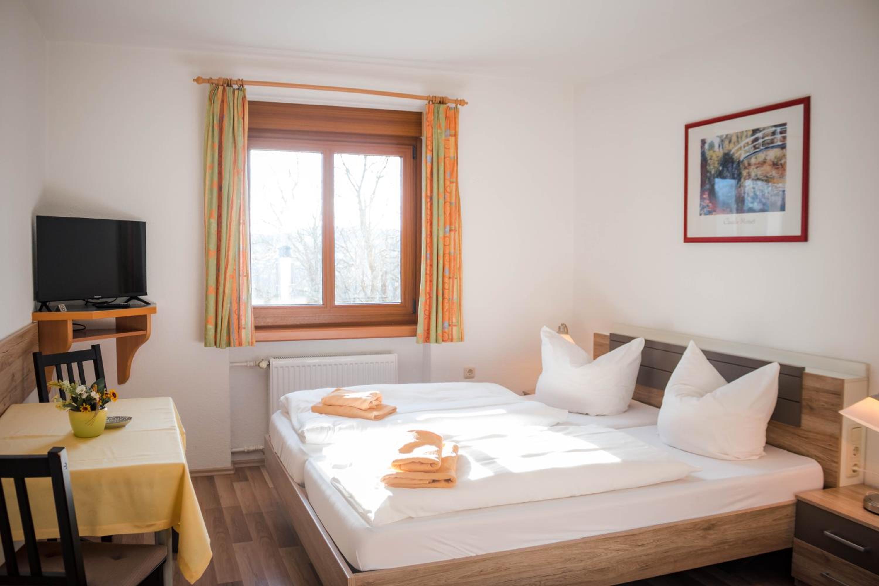 Es gibt ein sehr reichhaltiges Frühstück, das alles hat was man sich wünscht. Das frische Obst und die Rohkost haben mir gut gefallen. Da wir als Wanderer unterwegs waren, war das ein echtes Highlight. Man kann dort auch wunderbar Abend essen. Unser Doppelzimmer war hell und sehr geräumig. Ich kann die Unterkunft sehr empfehlen und komme gerne wieder.