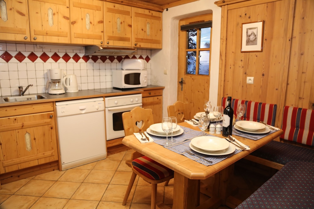 Such a charming chalet ski in experience, right on the slopes! Apartments come fully equipped with kitchen. Breakfast for 20 euro per person was always fresh with delicious pastries. Limited room service for dinner as only restaurant option. Has bus service to Courchevel 1850, but last bus back to hotel is around 7pm, otherwise a taxi each way can be around 50 euro. Definitely recommend but would consider renting a car next time to allow for easier access to main town.