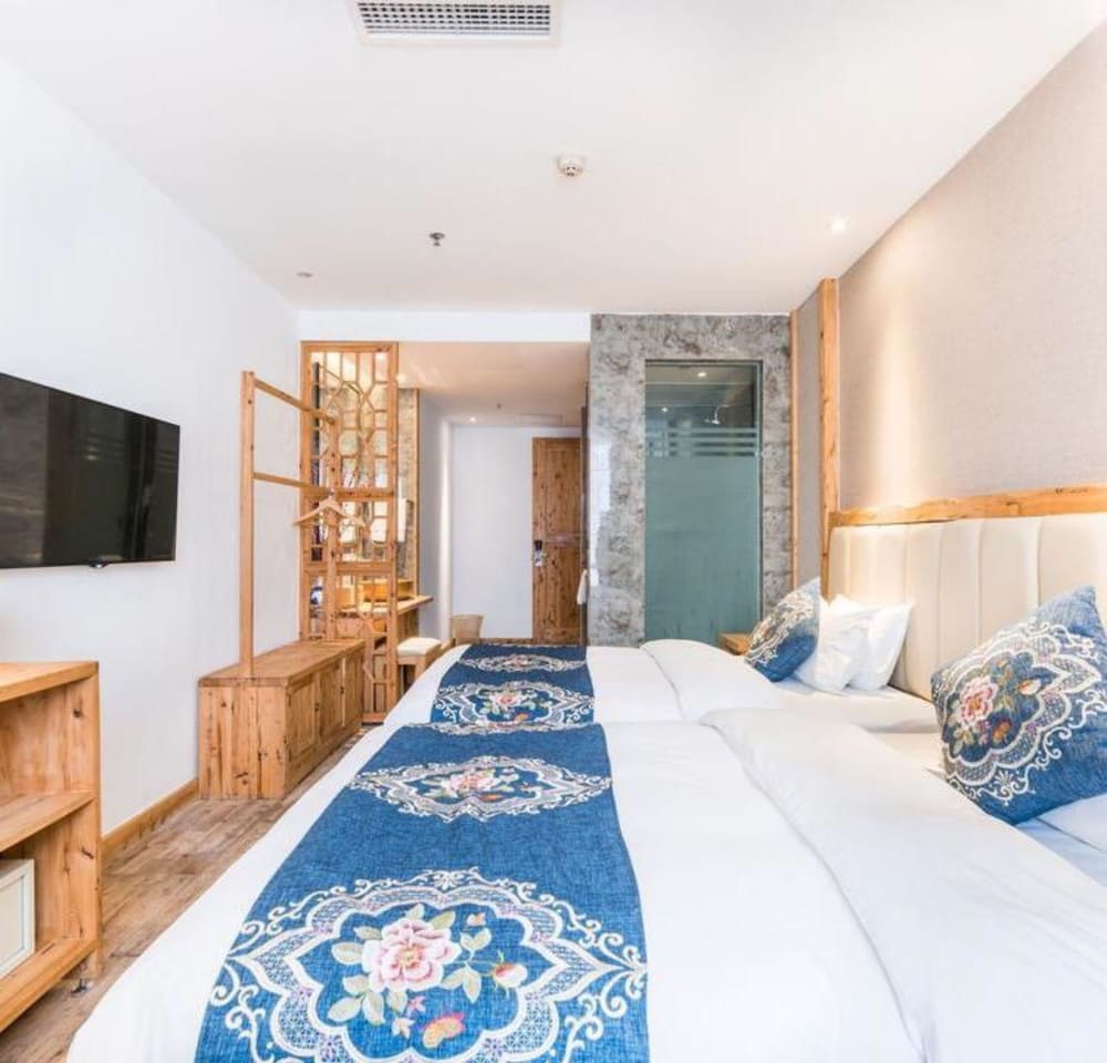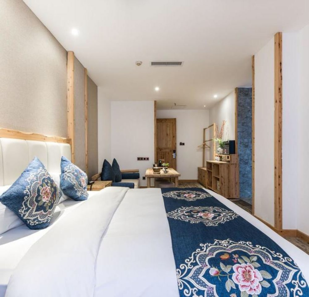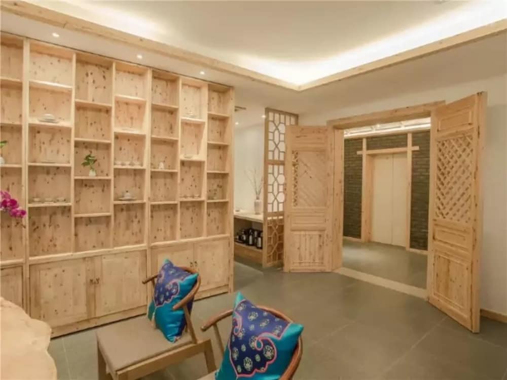 I really enjoyed the room and wood decor. When I finally got to the hotel which was a little difficult to find because Orbitz had the wrong building marked on their website. Once I arrived the staff were extremely nice to me. They gave me two small gifts a panda keychain and a Chinese New Year gift. I thought it was very sweet of the manager! I had some hot tea and some treats at reception. The breakfast was free and I enjoyed it. I didn’t have much chance to tour as much as I could because of my back injury but next time I come to Chengdu I would stay here again! It was conveniently located and 10 minute walk to Tianfu Square. Thank you for your warm reception and I will email Orbitz to fix the location of the building. 😊