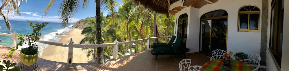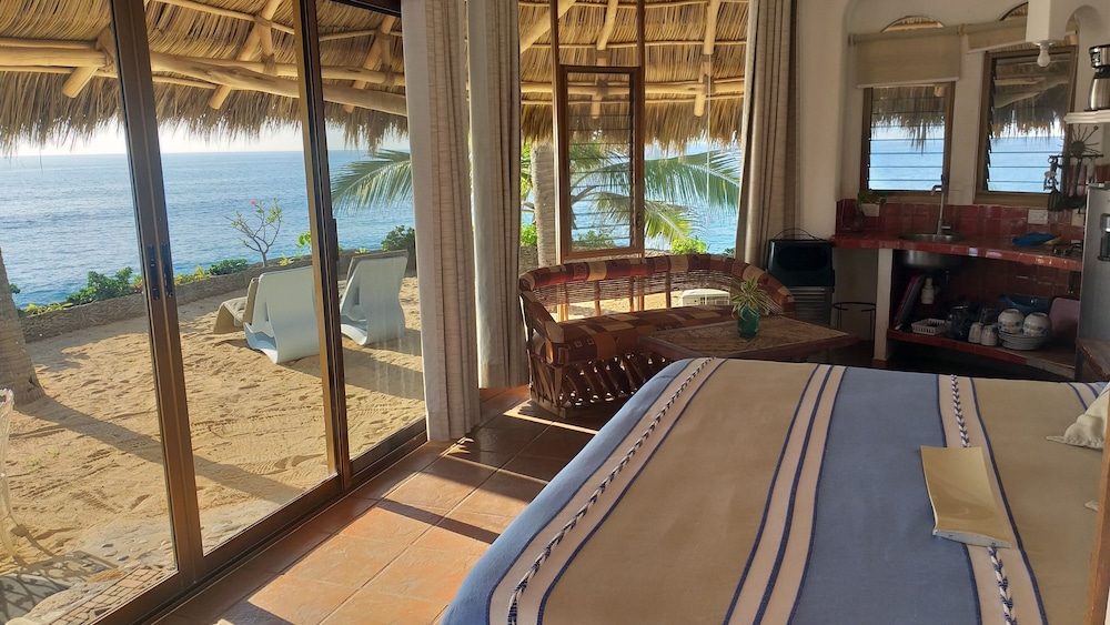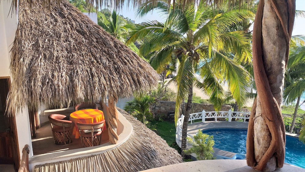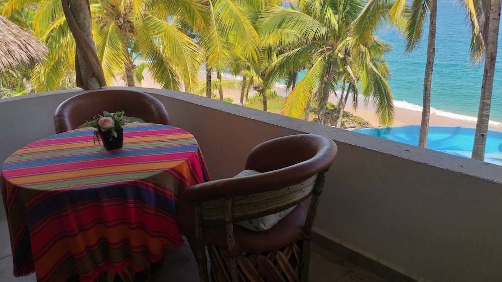 Bungalows Lydia has the most amazing ocean views and beach access. We had a little trouble communicating as no one on site could speak English and my Spanish is very poor but we managed and were able to check in and finalize payment (bring cash). Mrs. Lydia was an absolute gem. Even through our language barrier she did anything to make our stay as pleasant as possible. Our room needed a little work but the first floor ocean suite had absolutely spectacular views. The walk down to the beach was a steeper stair but very manageable. The pool was nice and relaxing. The hot tub was not being heated at the time we were there. I would recommend either having a car or golf cart to get to town as it is a little way out of town but the quiet and property are worth it. We felt very safe as it is a gated property but we have been coming to San Pancho for 8 years and have never had a problem no matter where we stayed. There is no restaurant on site but we did cook a little for breakfast and light lunch and ended up in town for dinners. We would definitely stay again and I vow to start working on my Espanol!