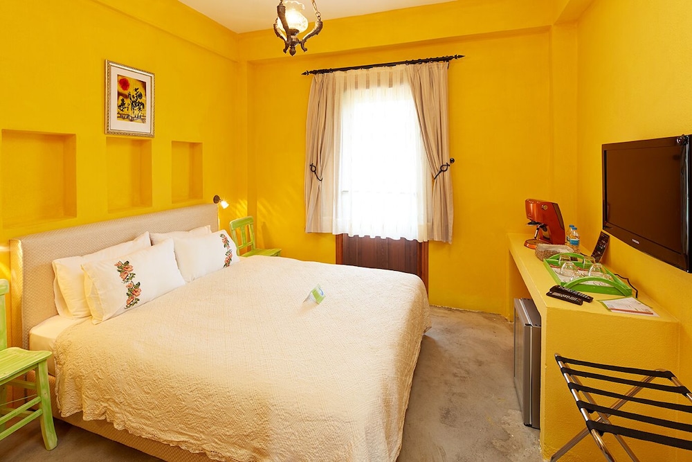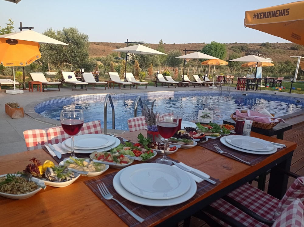 Sitenizde otelin konumu ile ilgili verilen bilgiler son derece yanlış. Otel merkeze 5 km uzaklıkta fakat sitede merkezde gösteriliyor. Bir vadinin içinde kurulmuş 4 küçük binadan oluşuyor. Vadi aslında güzel üzüm bağları ile çevrelenebilir ama bakımsız. Ödenen paranın karşılığı asla değil. Fakat adada bütün tesislerin fiyatları çok yüksek. Odalar son derece küçük ve temizlik sorunları var. Personel yetersiz. En iyi personel ahçı çok lezzetli yemekler yapıyor. Ürün kalitesi düşük. Ezinenin burnunun dibinde sabah kahvaltısında verilen peynir ortalama bir peynir. Ezine değil. Maalesef üzülerek söylüyorum aldıkları parayı biraz daha tesise harcamaları lazım. ilkelikle , butik otelciliğin birbirine karıştırılmış olduğu bir mekan olmuş. Arabanız yoksa sakın gitmeyin . Zaten gidemezsiniz. En güzel servis Türk kahvesi için yapılan sunumdu. Bahçeler bakımsız ve gelişi güzeldi. İyi bir peyzaj çalışmasına kesinlikle ve acilen ihtiyaç var. Bu eleştirilerim tesise zarar vermek için değil , tesis sahiplerinin işlerine ilgilerini arttırmak amacı ile yapılmıştır.
