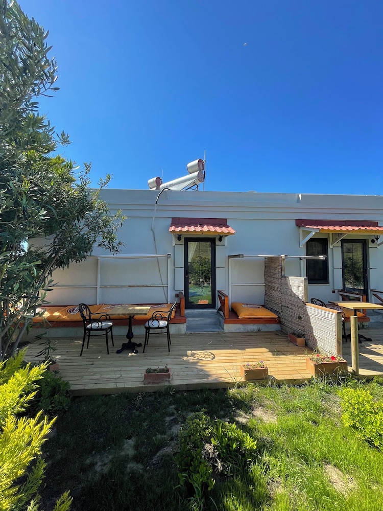 Bozcaadanın sakin kısmında. Eski Rum evleri tarzında yapılmış evlerde konaklatıyorlar. Otel her şeyiyle yeni. Personel son derece ilgili.
