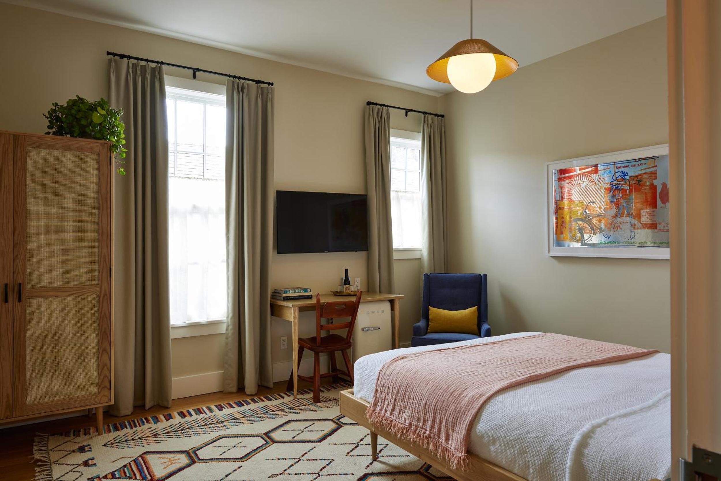 Hotel Kinsley, nestled in Kingston, offers elegant rooms with modern amenities like flat-screen TVs, air conditioning, and plush bedding. The private bathrooms are equipped with showers and hairdryers, ensuring a comfortable stay for guests.