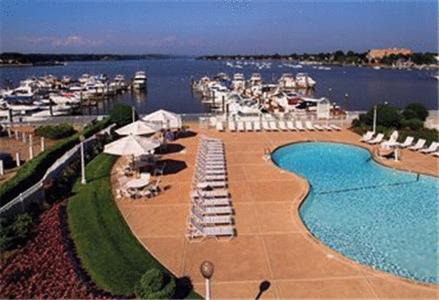Nestled on the picturesque banks of the Navesink River in Red Bank, New Jersey, the Molly Pitcher Inn offers a serene retreat with a marina, perfect for guests looking to unwind and enjoy the waterfront views.