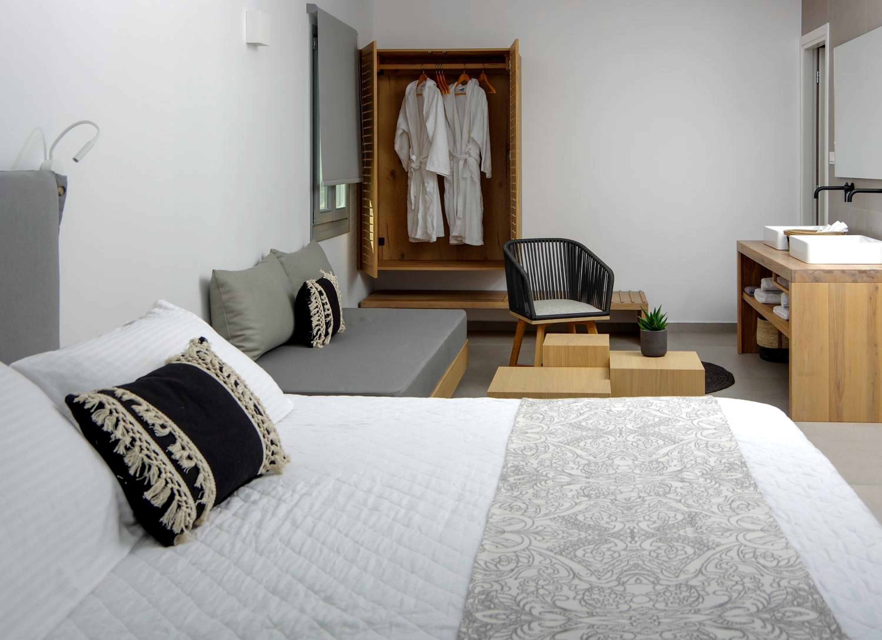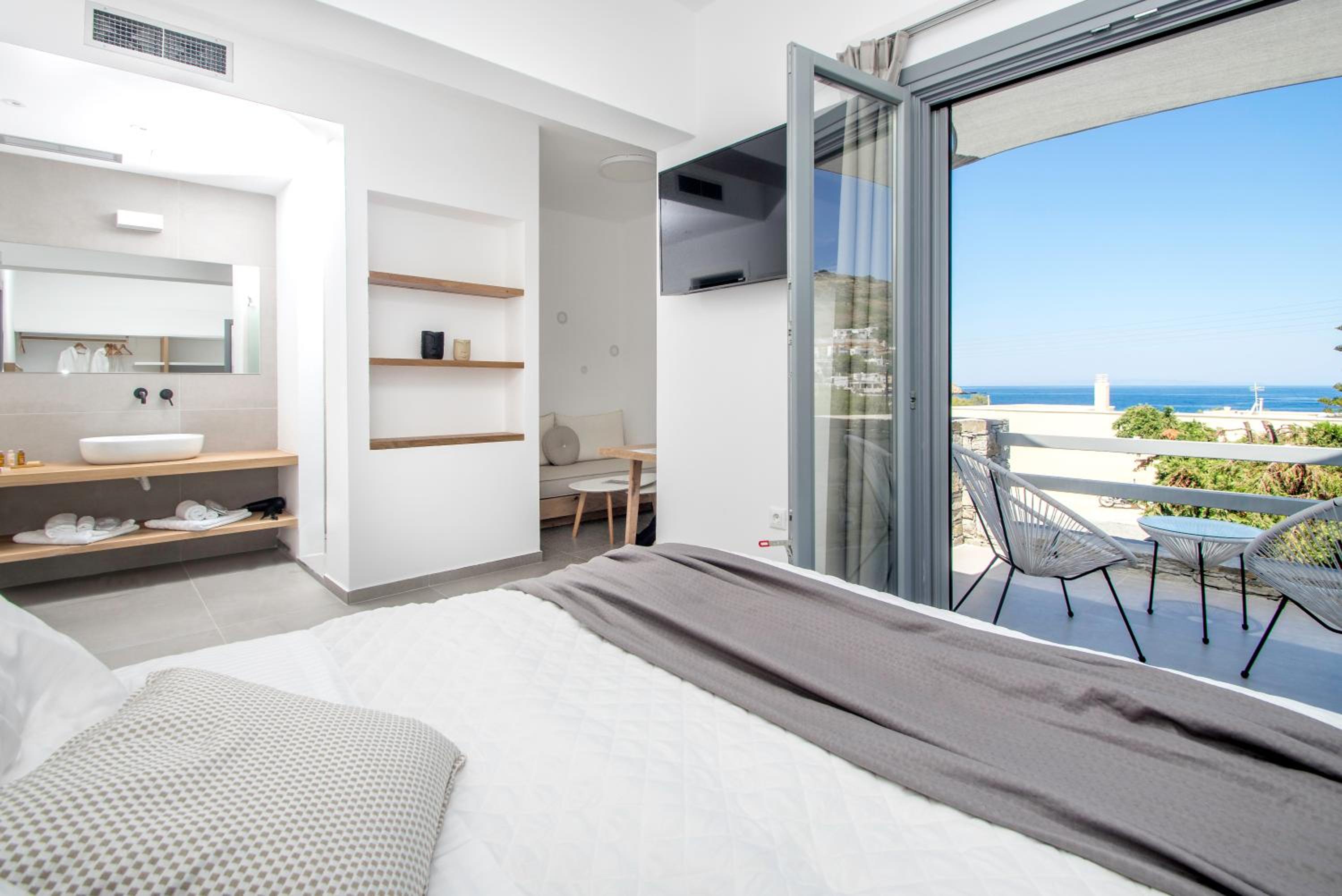 Experience comfort and elegance at Oro Suites, located in the picturesque Kinion with stunning sea views. Indulge in our air-conditioned rooms equipped with modern amenities like a flat-screen TV, minibar, and private bathroom, ensuring a relaxing stay.