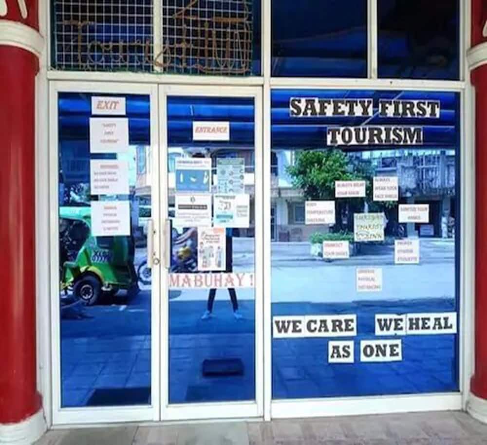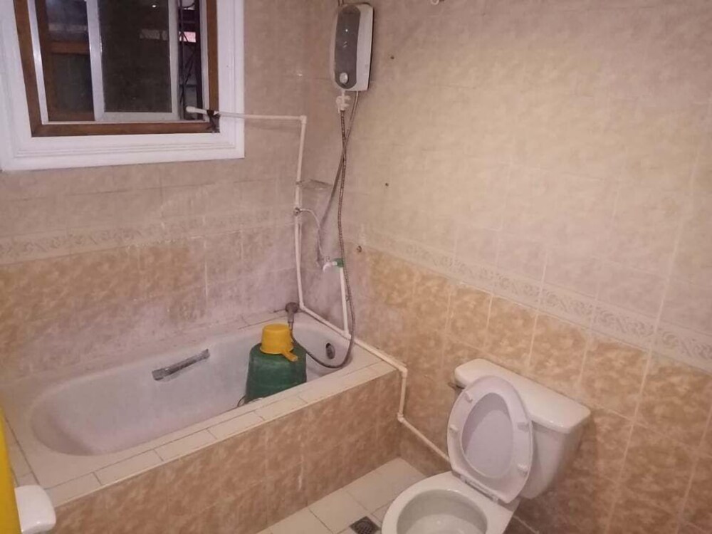 Only thing close is a convenience store. Room air-conditioning was damaged, toilet had no seat, plumbing was exposed. No soap/shampoo, etc. provided. TV wasn't even connected (no service subscribed), only one wall socket in the room. Room not even CLOSE to the spaciousness depicted in the photos. The clerk was helpful, but the night clerk charged a foreigner more for a room than the day clerk just 2 hours earlier had charged a Filipino for the same type of room.