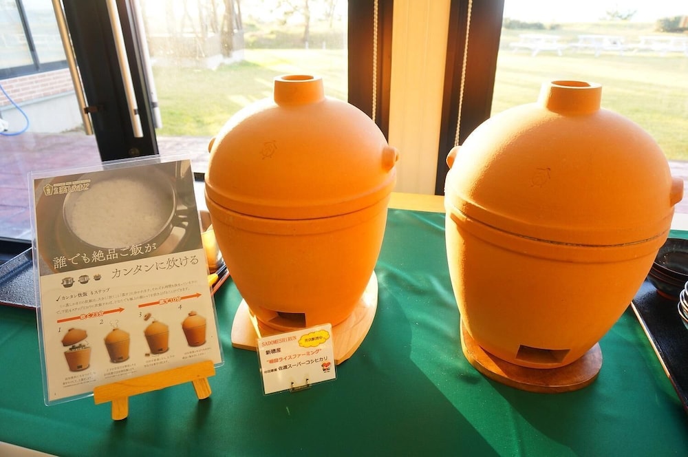 Take in the mesmerizing views of the garden and utilize amenities like complimentary wireless internet access and barbecue grills. Dive into a delightful meal at ハウスレストラン in Hotel Familio Sado Aikawa, where buffet breakfasts await. Your comfort is our priority with luggage storage, laundry facilities, and a safe deposit box available. Park effortlessly with free self-parking on-site.