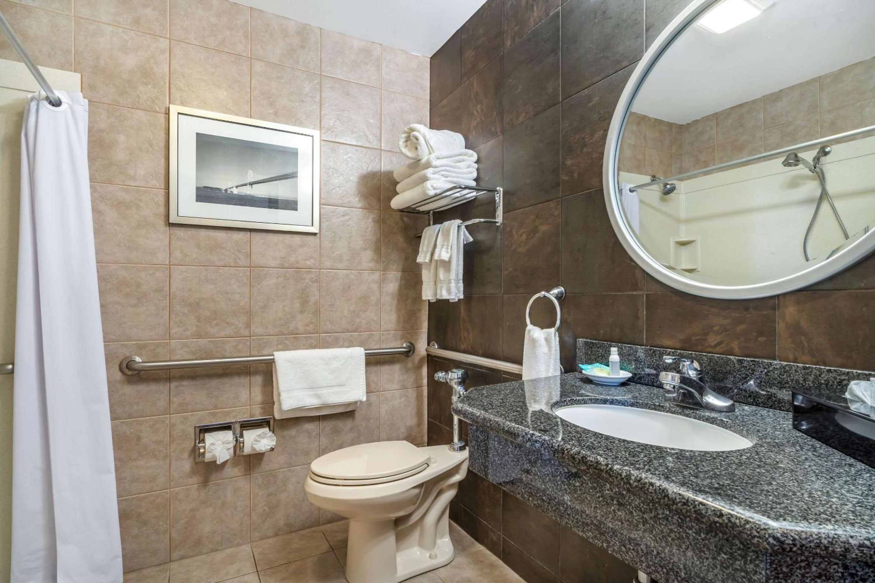 We may have been in an older room but the pictures did not match the room we had. But it was decent. Bed comfortable and shower water pressure awesome. The staff was very nice. Free parking was a bonus! Made it very affordable.