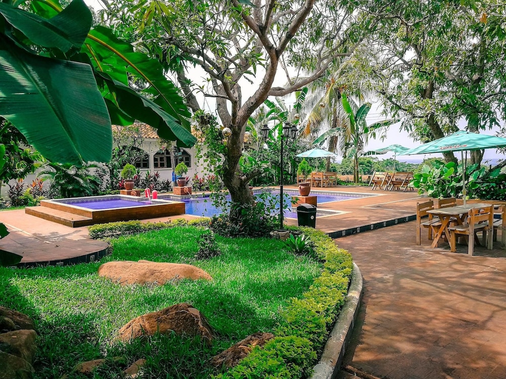 Enjoy a refreshing dip in the outdoor pool or relax while taking in the scenic view from the terrace and garden.