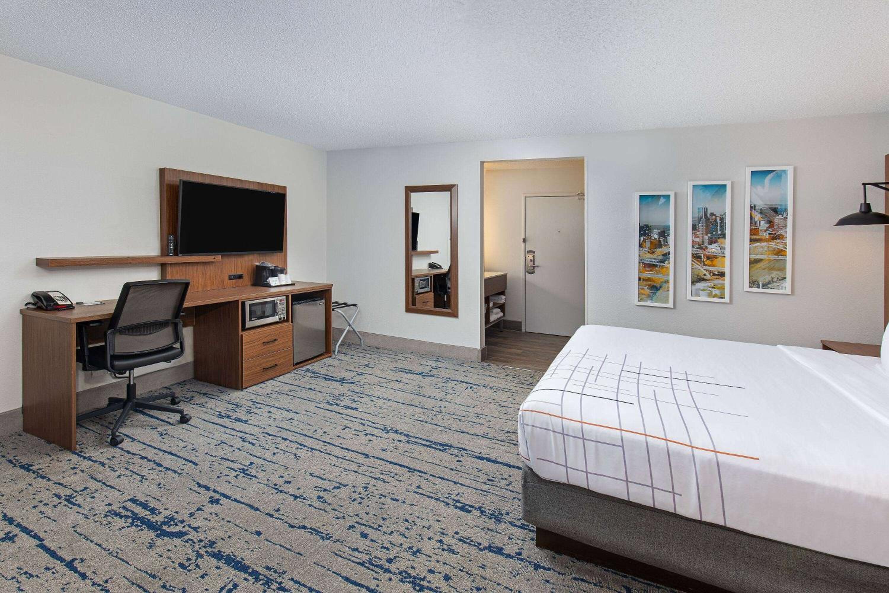 Each room at La Quinta Inn & Suites Nashville Airport is thoughtfully equipped with a desk, flat-screen TV, and a private bathroom. Guests can upgrade to deluxe rooms for added amenities like microwaves and compact refrigerators, providing all the comforts of home.