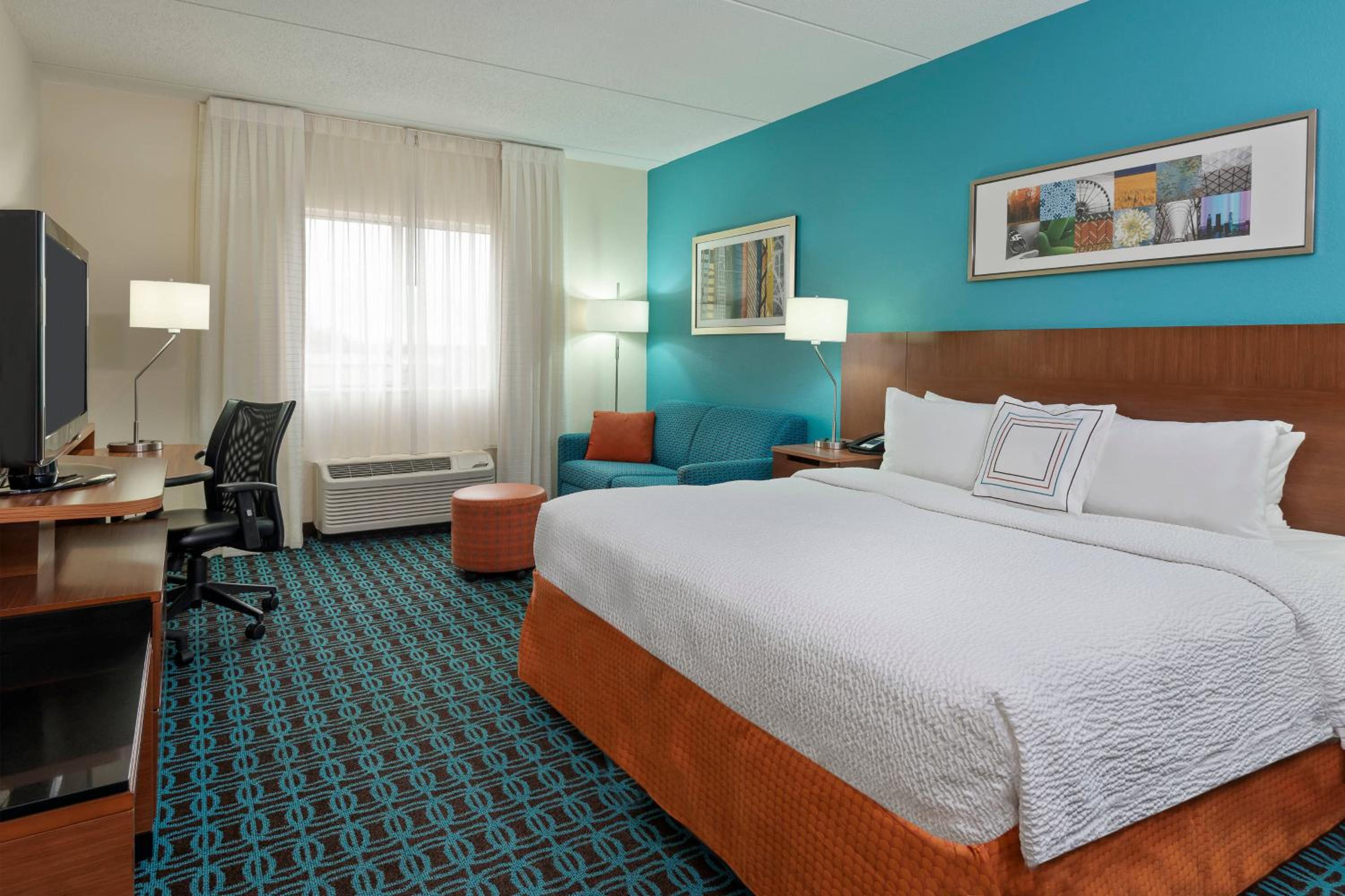 The guest rooms at Fairfield Inn Owensboro offer a cozy retreat with modern amenities including a 32-inch flat-screen TV, microwave, and refrigerator. The classic decor creates a soothing ambiance for a restful stay. Additionally, on-site laundry and dry cleaning services are available for added convenience.