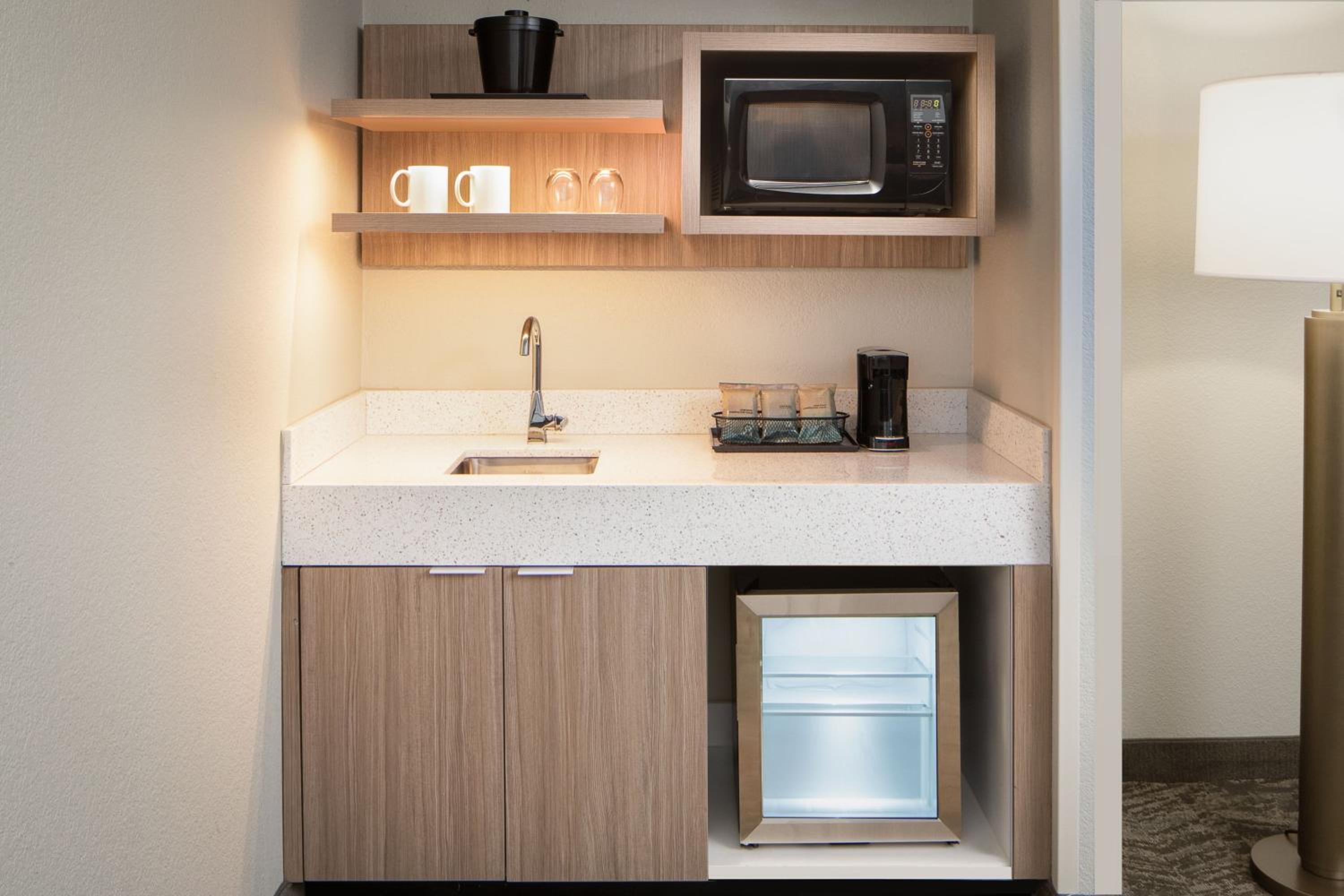 Each suite at our hotel is thoughtfully equipped with a microwave, mini-refrigerator, cable TV, and complimentary Wi-Fi, ensuring a comfortable and convenient stay for all guests.
