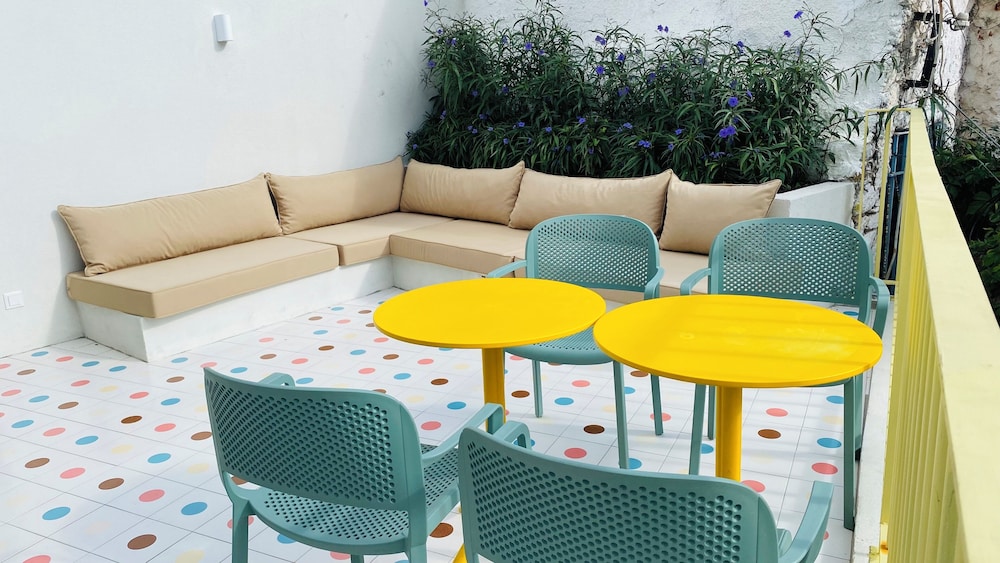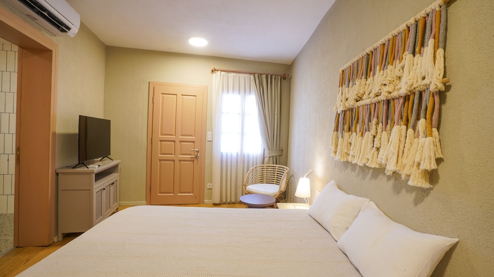 Hotellet valgt ud fra rolig beliggenhed og smukke fotos af have, værelser og beliggenhed. Vi fik intet af dette. Det viser sig, at hotellet har mange forskellige værelser rundt i byen, man bör således ikke på et hotel. Vi blev anvist en helt anden beliggenhed, i en baggård (der var tre hotelværelser) ved bargaden, hvor der blev spillet høj musik i forskellige genrer til kl 4 hver nat. Se fotos. Det meste af udsigten fra værelset var en grim mur. Det var umuligt at sove. Der var ingen mulighed for parkering i nærheden. Således ikke for dårligt gående. Vi er meget skuffede, vrede og søvnløse. Fremover vil jeg aldrig acceptere anden placering end den, jeg har bestilt.