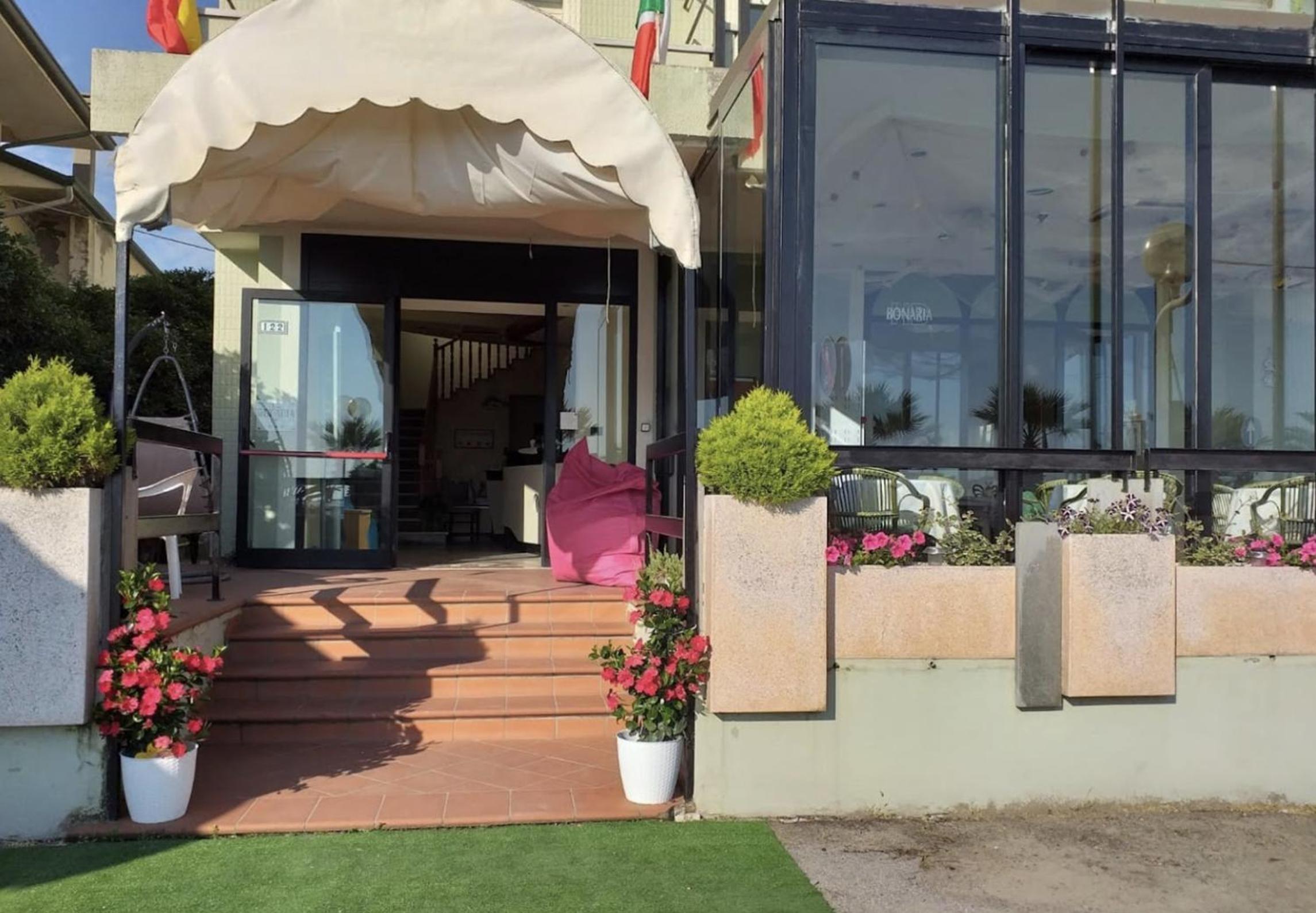 Hotel Bonaria is ideally situated facing the beachfront in Rimini, providing guests with stunning views and easy access to the sandy shores.