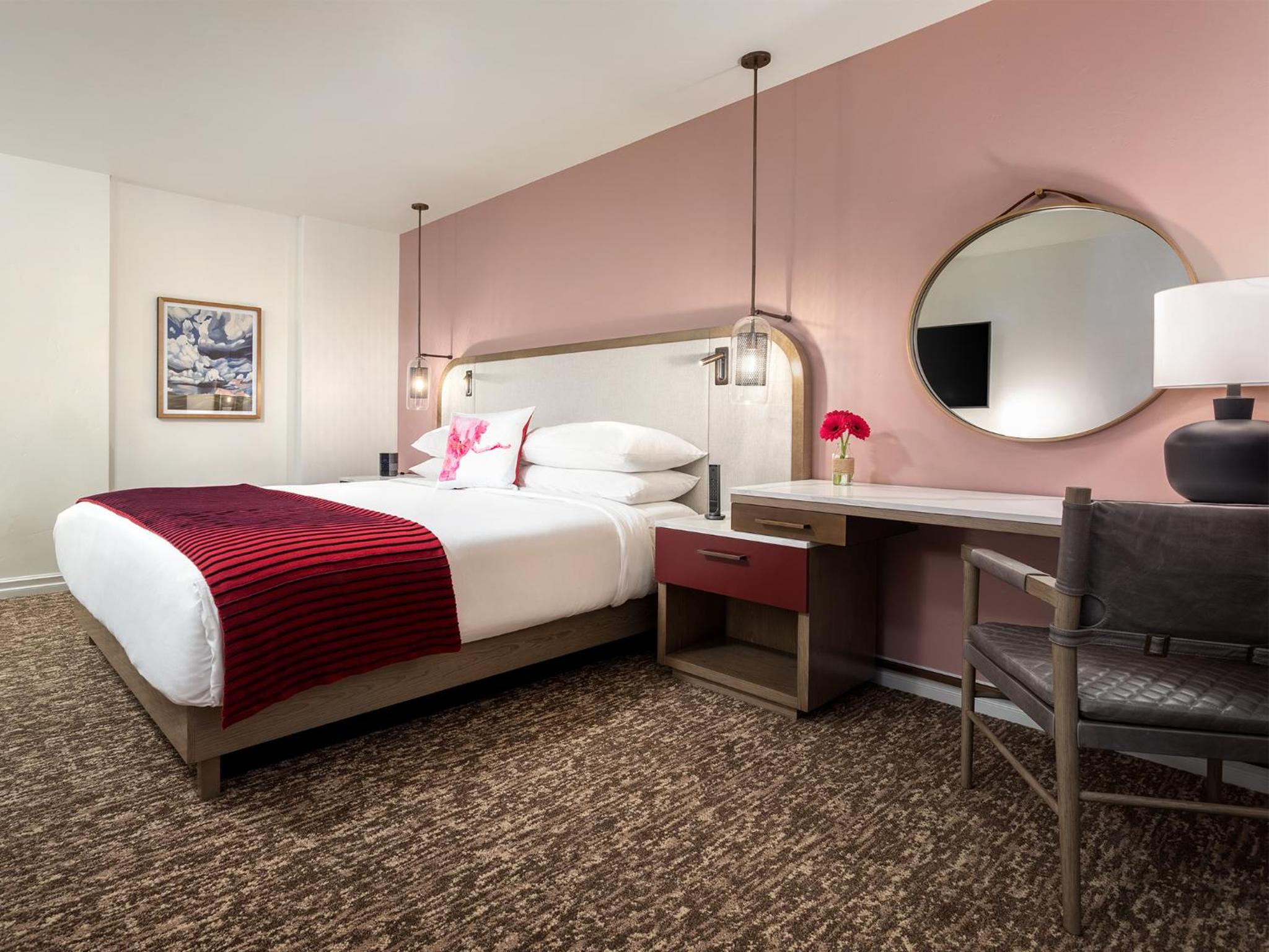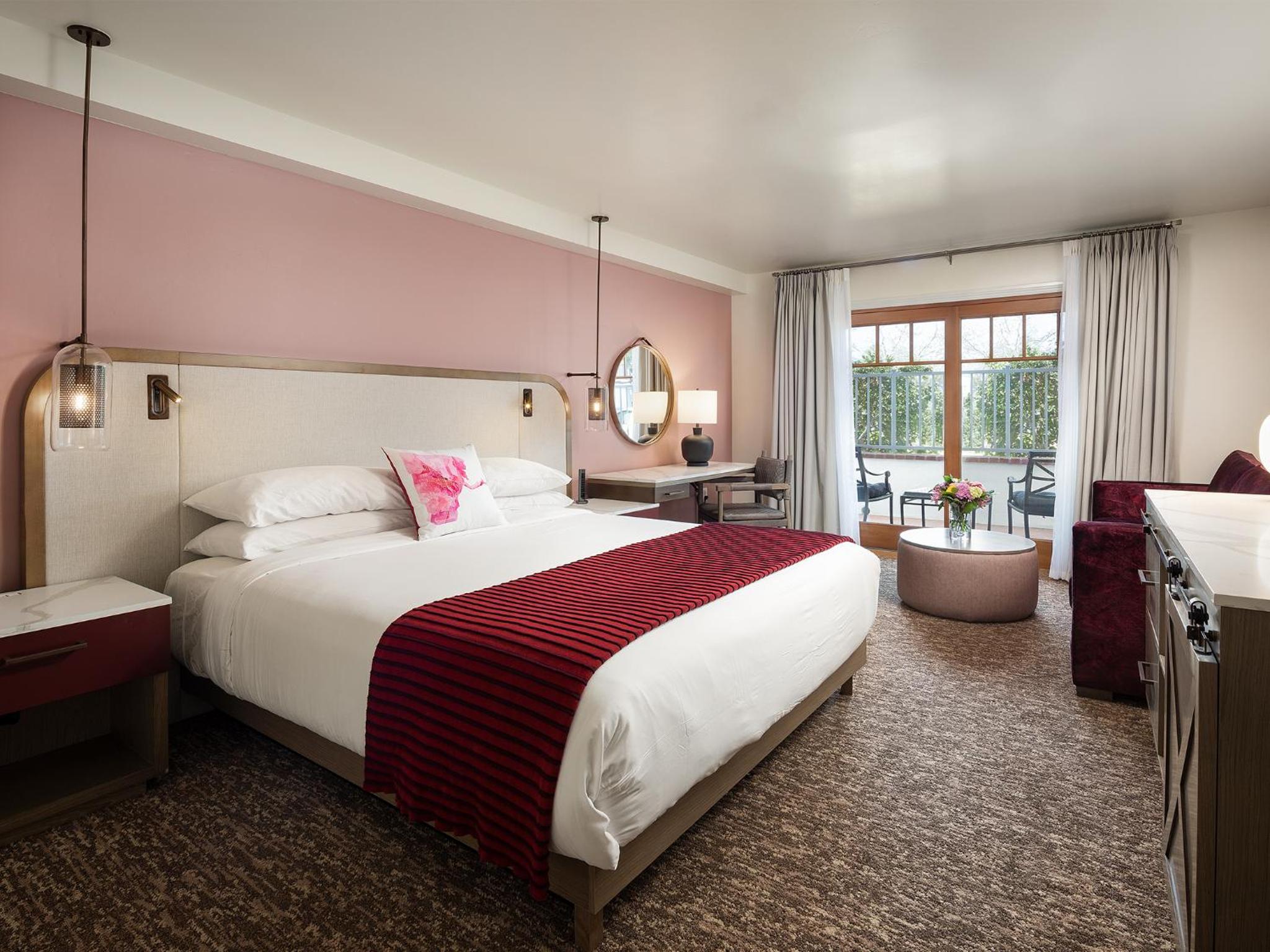 Hotel Corque, just a stone's throw away from Old Mission Santa Ines, offers elegantly designed rooms with modern amenities like an iPod docking station, free WiFi, and breathtaking views of Solvang Village or the Santa Ynez Hills.