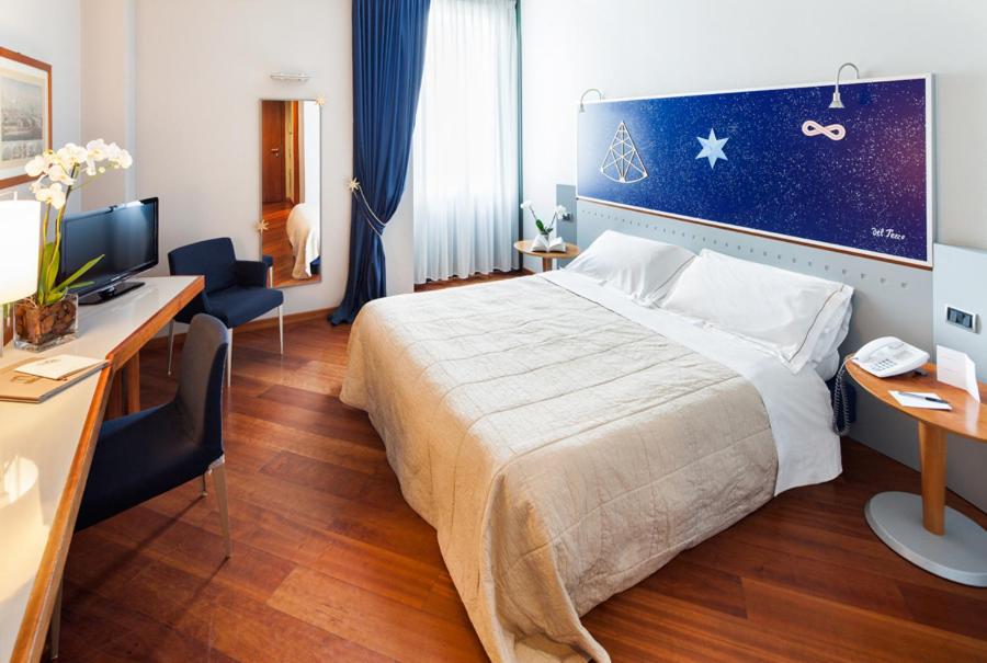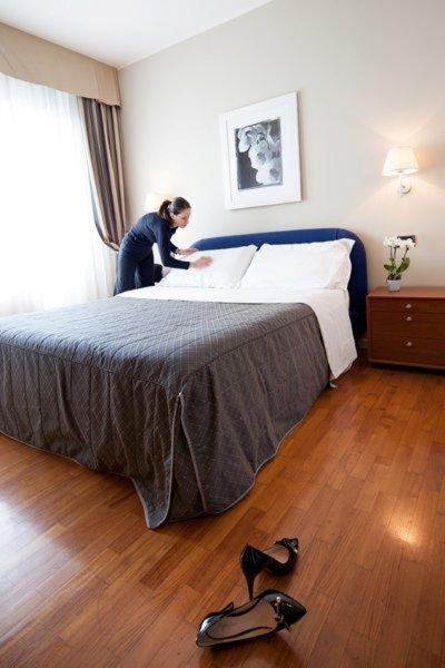 The hotel features a fitness centre with modern equipment, sauna, and Turkish bath for relaxation. Conveniently located near the motorway exit and race track, with easy access to Milan's historic centre and free on-site parking.