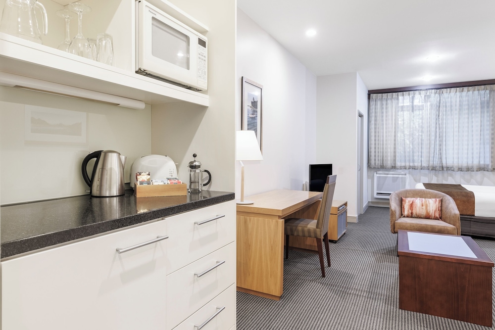 We stayed in a 2 bedroom apartment, it had everything we needed for a family. The location was spot on. A bus stop (on Lambton Quay directly opposite hotel not the driveway entrance) was fantastic, easy access from the airport and to all the attractions we visited (weta workshop, zoo and airport) and everything else we could go on foot. The kids enjoyed catching the bus. Minutes from a woolworths supermarket and the cable car. The hotel was really clean and quiet, great water pressure too. Loved that it had a washing machine and dryer as it was quite wet and with kids, that made life easier. A good kitchen layout with a small dishwasher, oven, cook top microwave made planning kids meals very easy. The room had a good amount of space and I would definitely stay again. The staff were lovely and found one of the kids hand held gamers left behind and couriered to us, really appreciated that.