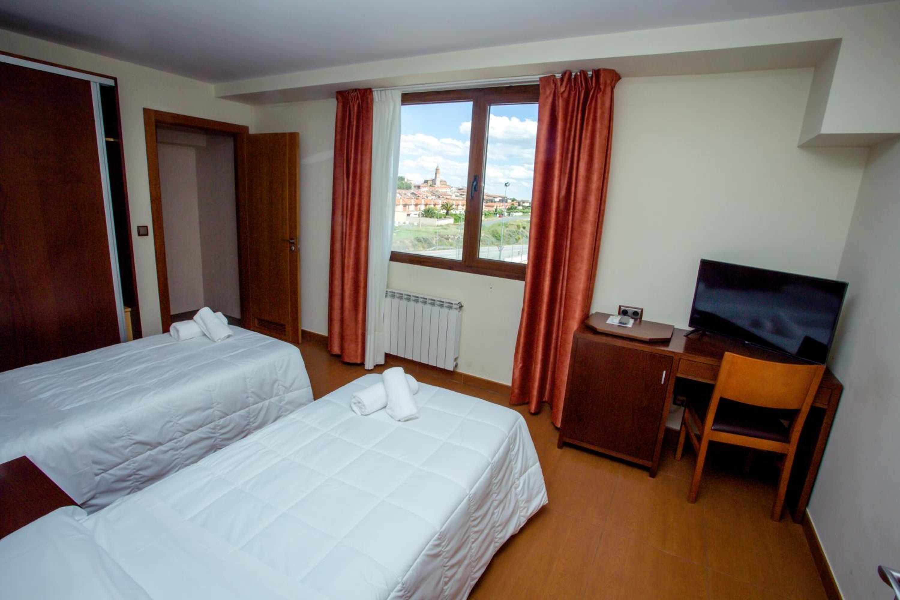 El servicio de restaurantes estaba cerrado aunque en el mismo edificio había un bar con mesas y podías cenar, comer y desayunar, digamos más familiar, pq no deja de ser un hotel de paso y en una zona de carretera. Pero bueno, era lo que esperábamos, un precio razonable para una estancia cómoda cerca de Calahorra y Logroño.