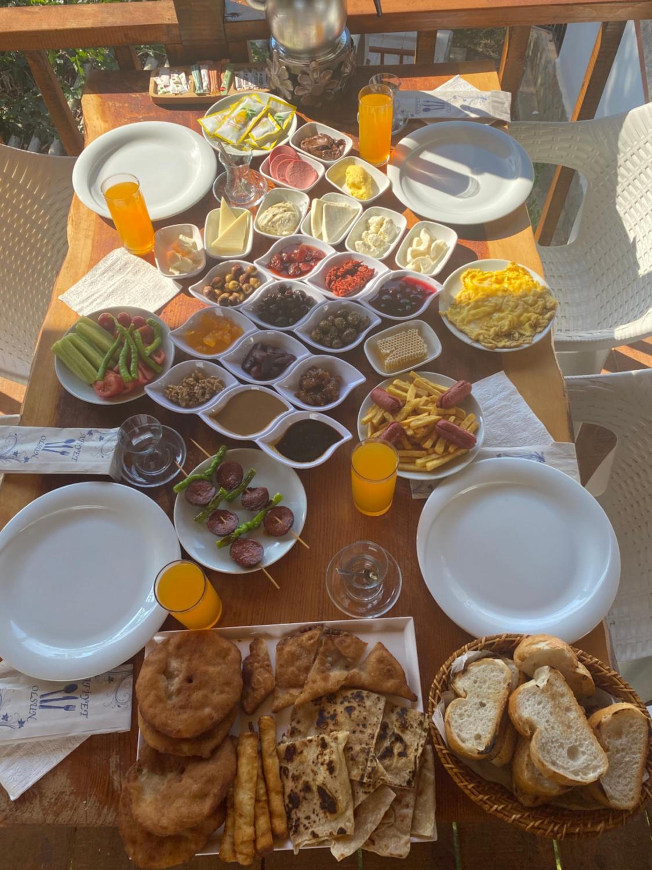 Breakfast was very basic, no fruit, no cereal. Only salad, sausages and eggs and bread (no toast). Only tea and coffee to drink. Dinner was poor, the same food daily, and only one food option per day for example nuggets were served 5 days out of our 7 night stay with no other options, only one dessert option too (chocolate yogurt) no fruit and only tea and coffee to drink. Meals are served downstairs in a dining room, there's no lift and cats roam freely inside. The spa bath in the bungalow took around 1 hour to fill with water and took a long time to come thru warm water, but Nice in the end. Very thin walls on bungalow , neighbours having intercourse loudly. Only 1 english tv channel on our TV in the bungalow. Local shop in across the main road ( dangerous to cross on foot)